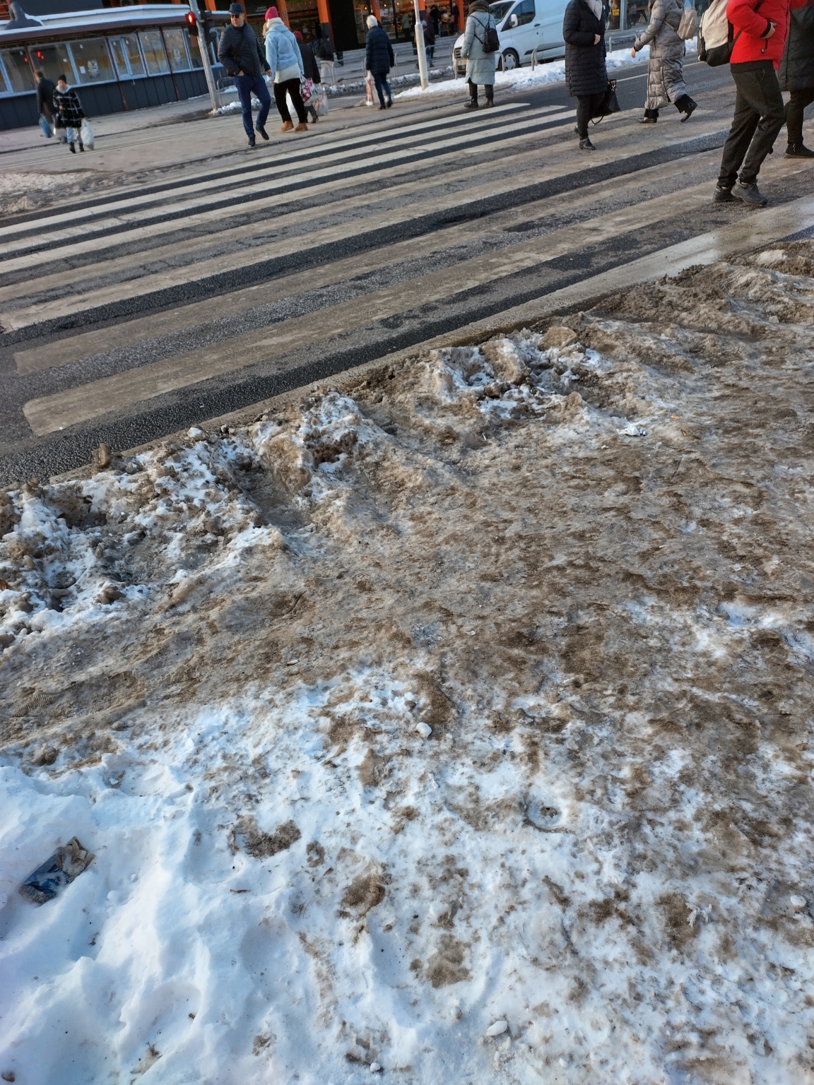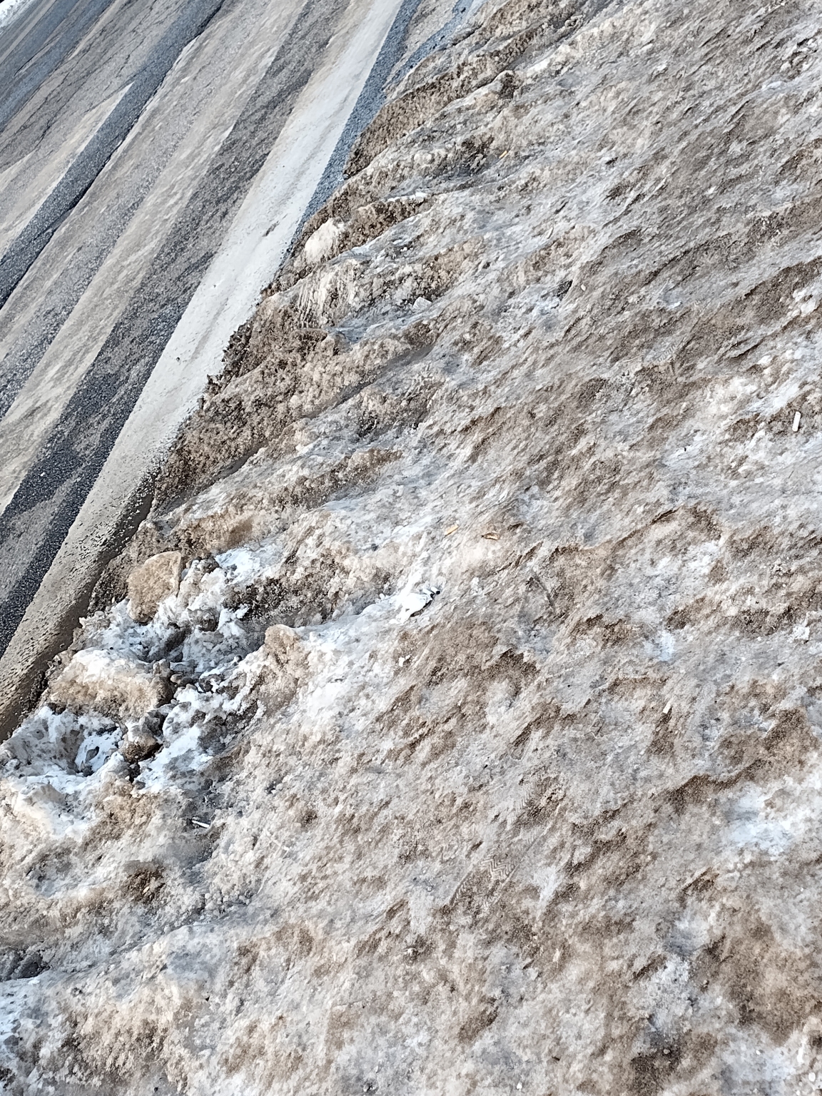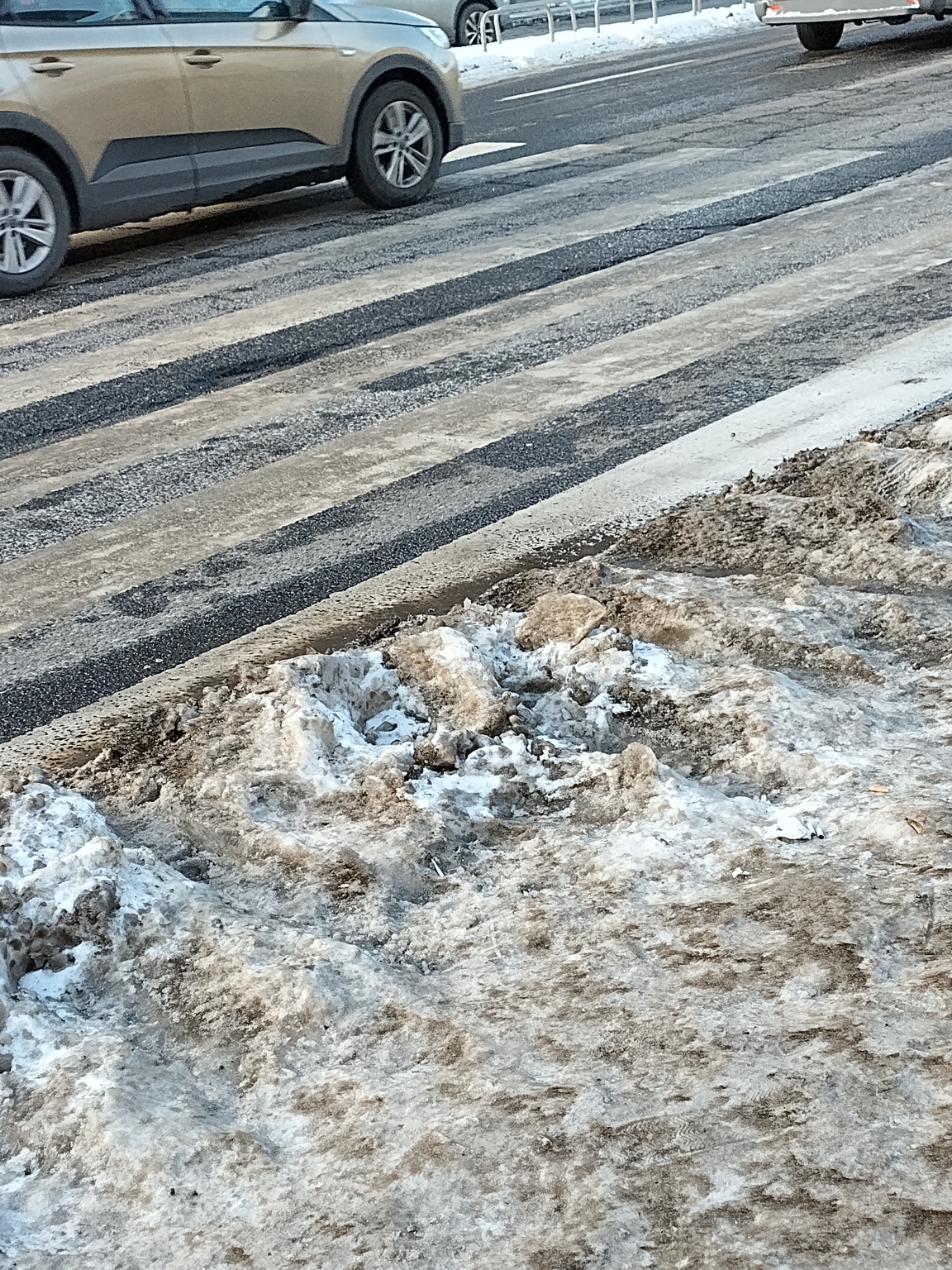 Balesetveszélyes megkeményedett hórakás a gyalogátkelő szélinél