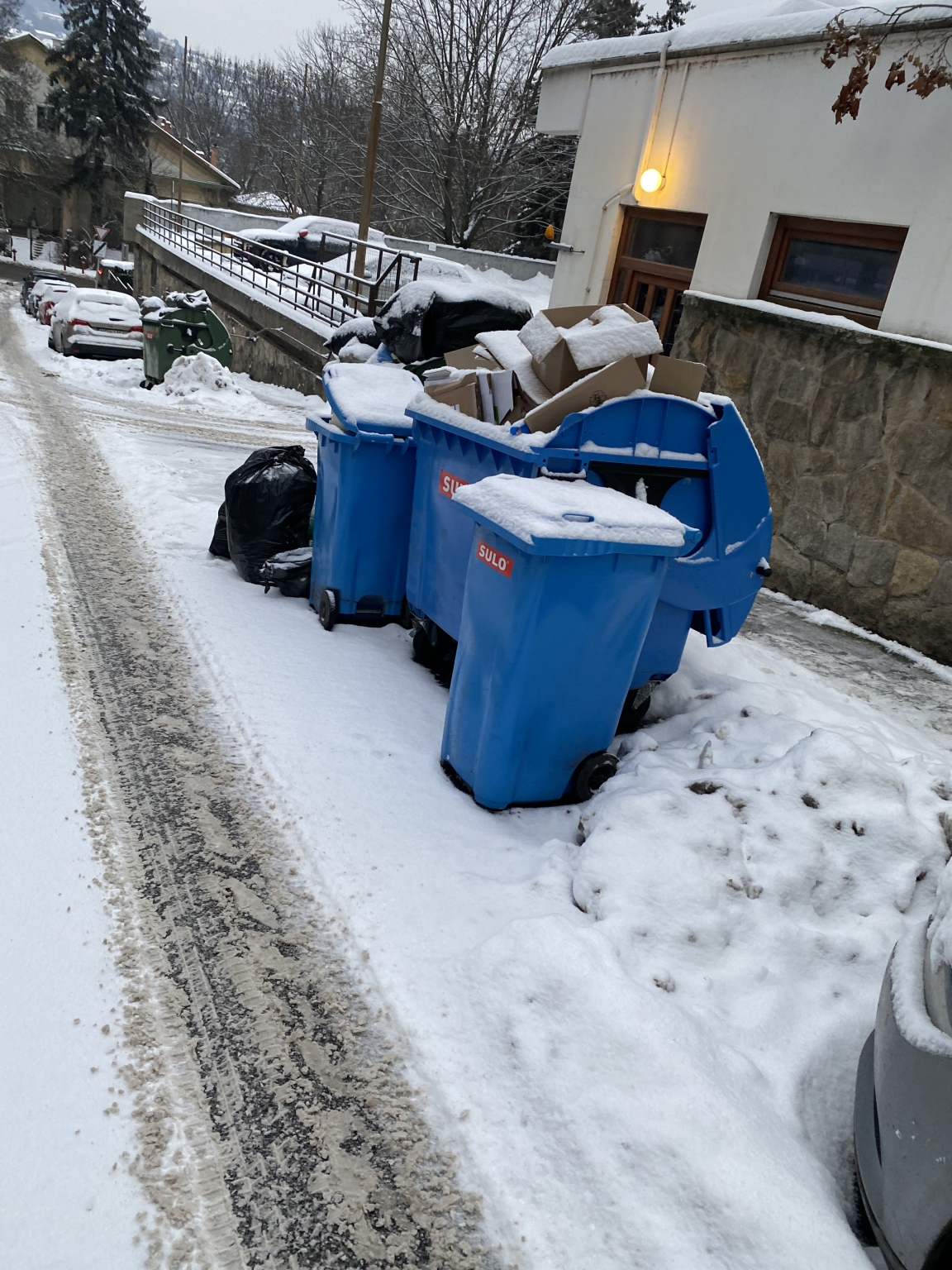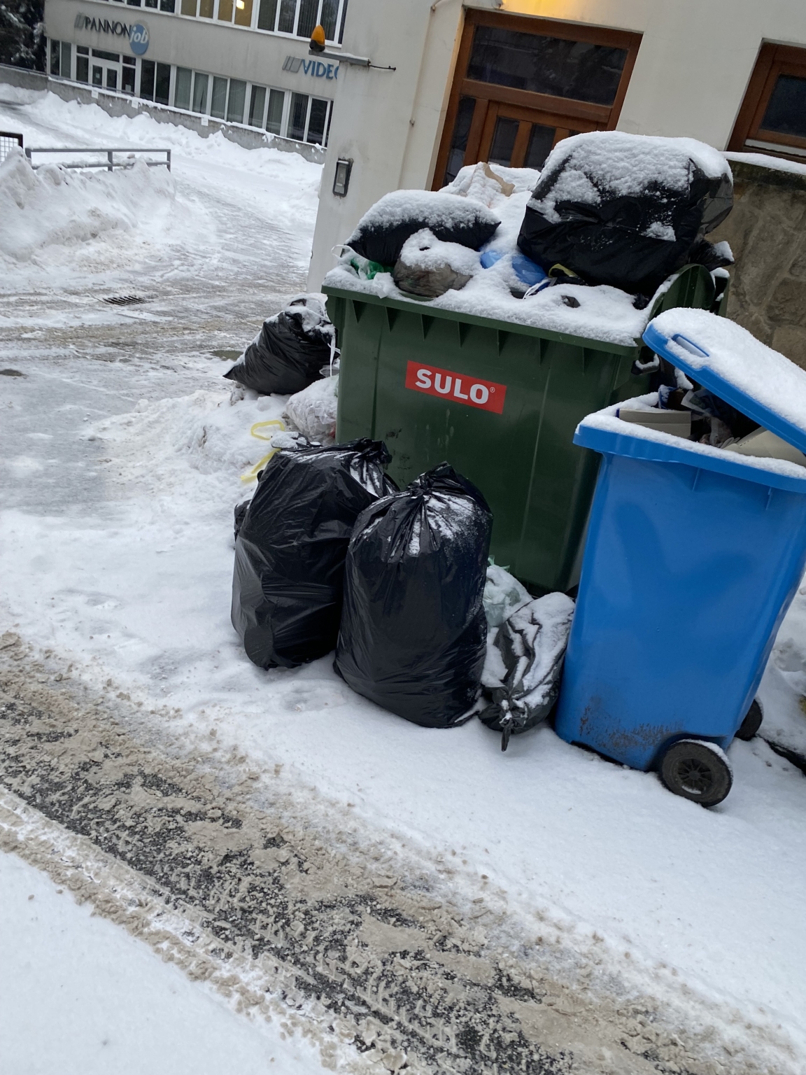 A mellékelt fénykép alapján jelzem, hogy a Furulya utcában a hulladék több mint két hete nem kerül elszállításra. A kukák túlcsordulnak, a szemeteszsákok az úttesten állnak, jelenleg hóval és jéggel borítva. Különösen figyelemre méltó, hogy az utca takarítva volt, közlekedni lehetett, az elszállításnak semmilyen objektív akadálya nem állt fenn. Úgy tűnik azonban, hogy az intézkedés megvárta az ónos esőt, így most ismét rendelkezésre áll egy kényelmes indok arra, miért nem lehet a hulladékot elszállítani.