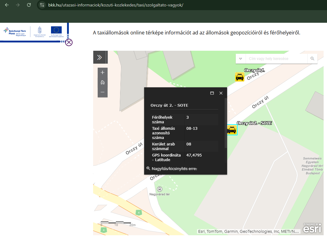 Taxiállomás reklámelemének rendbetétele vagy felszámolása bejelentés helye