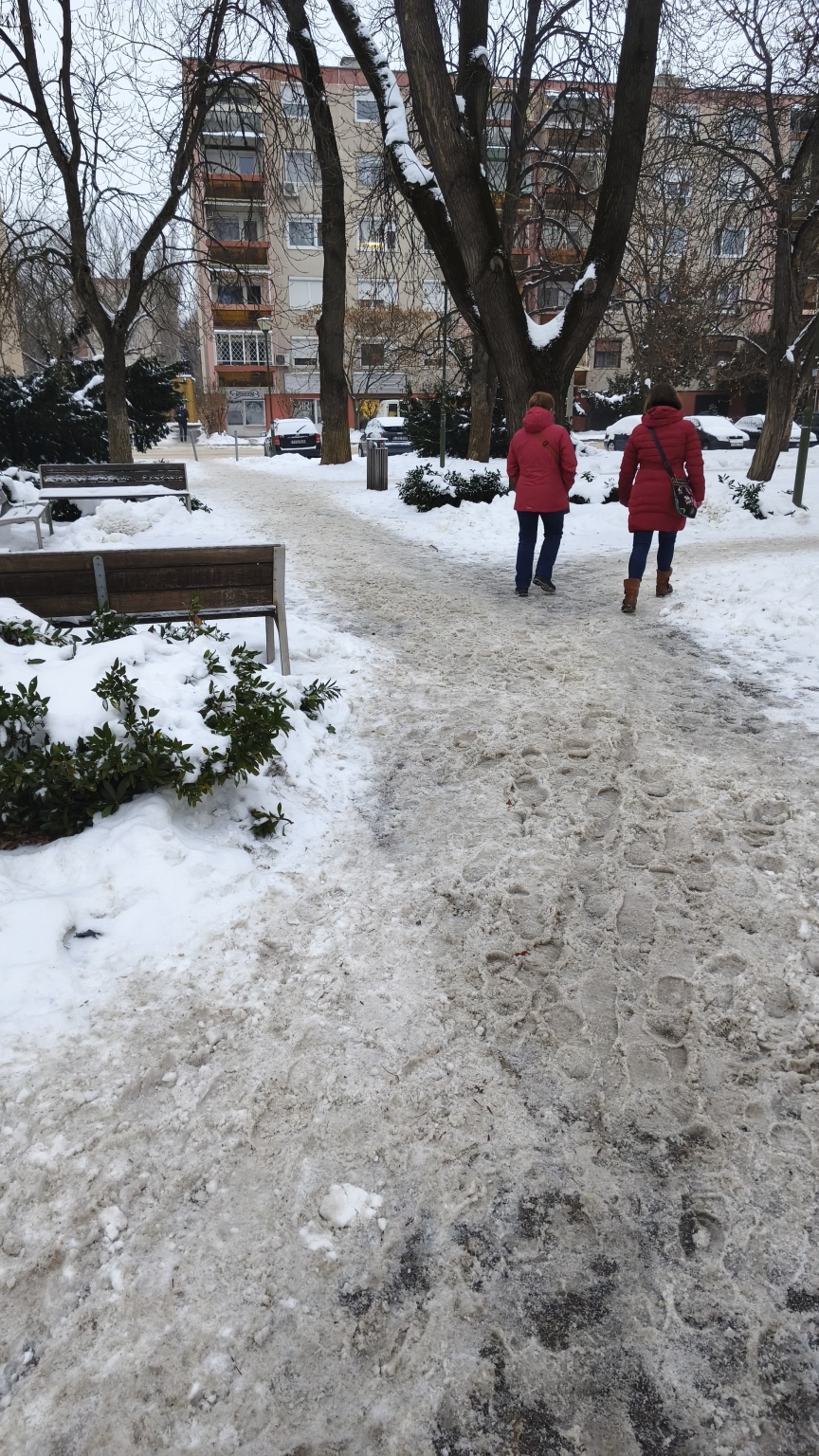 Szent kereszt tér hóeltakarítás. Főleg a gyalogátkelőhelynél, 97-es stb. buszmegállók város felé. És maga a park a templom előtt eléggé neccesen havas.