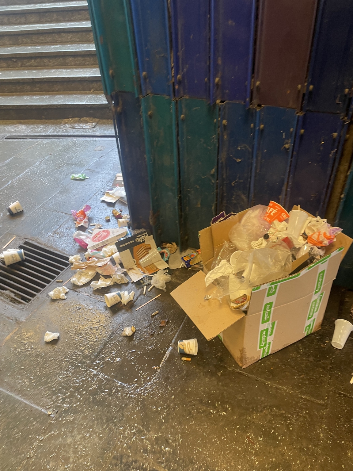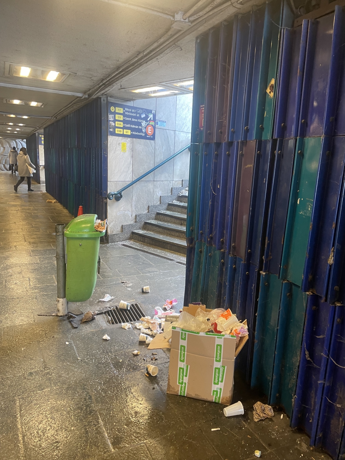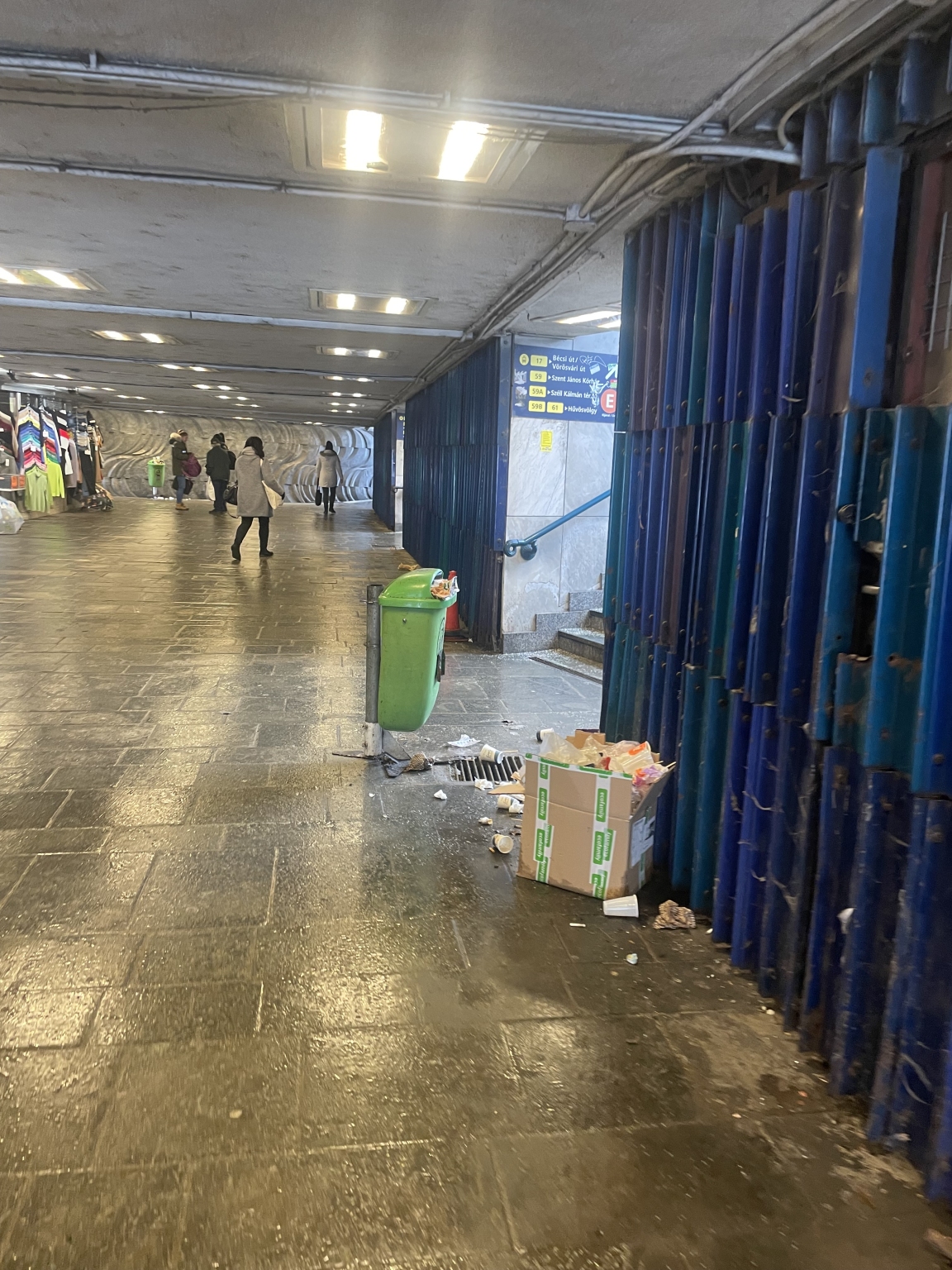 A déli pályaudvarnál az aluljáróban a 17-es 59-es villamosnál 4 napja áll a szemét a kuka környékén.