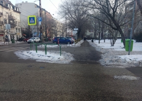 Jeges, havas járda az iskola közelében