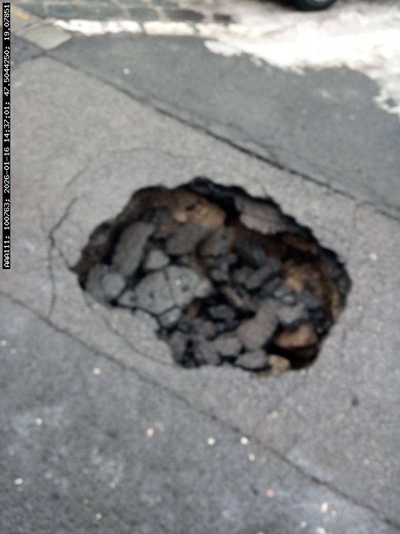 A Budapest VII. kerület BETHLEN GÁBOR UTCA 31-nél beszakadt az aszfalt a buszmegálló után. Több autó is defektet kapott.