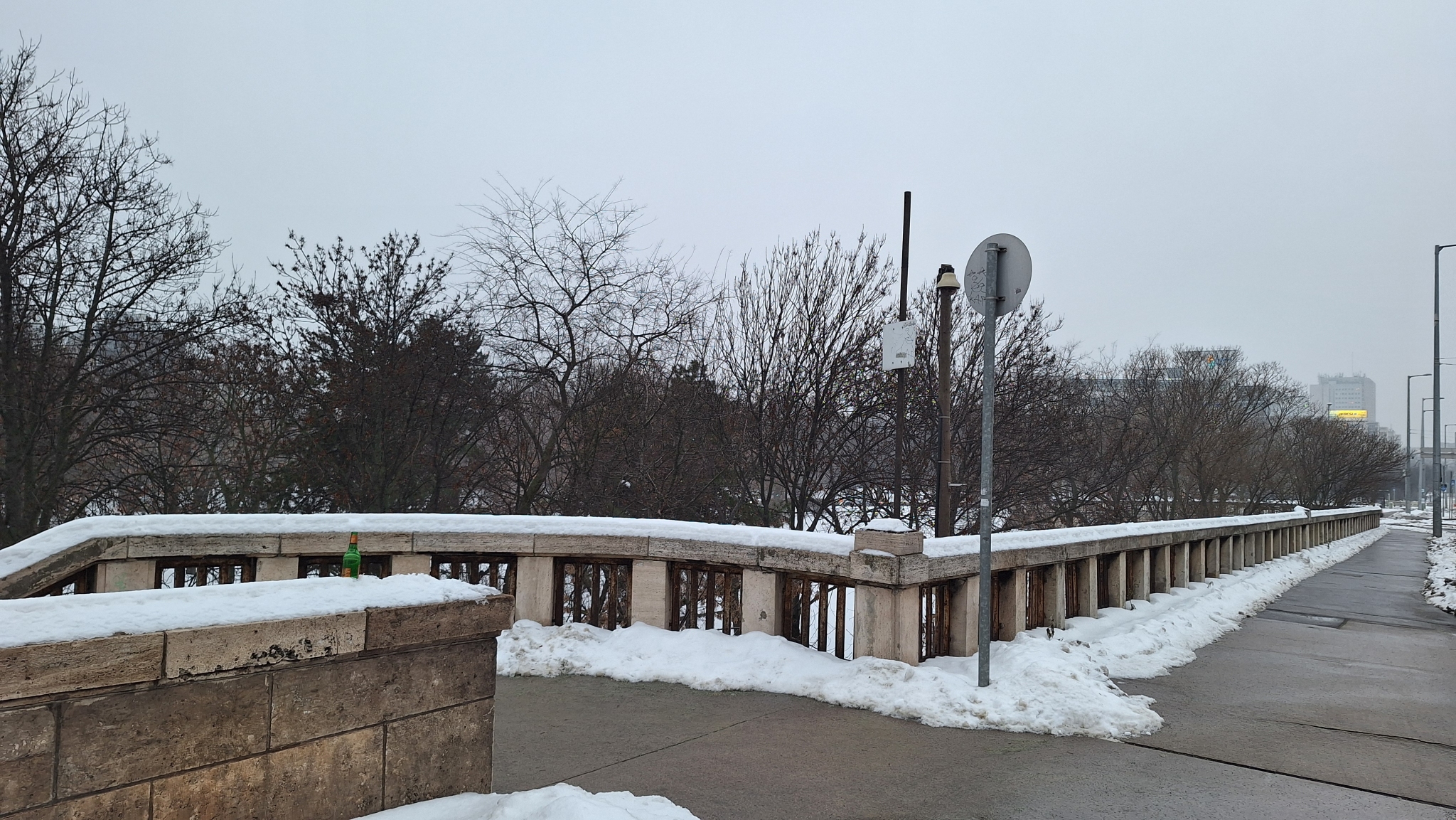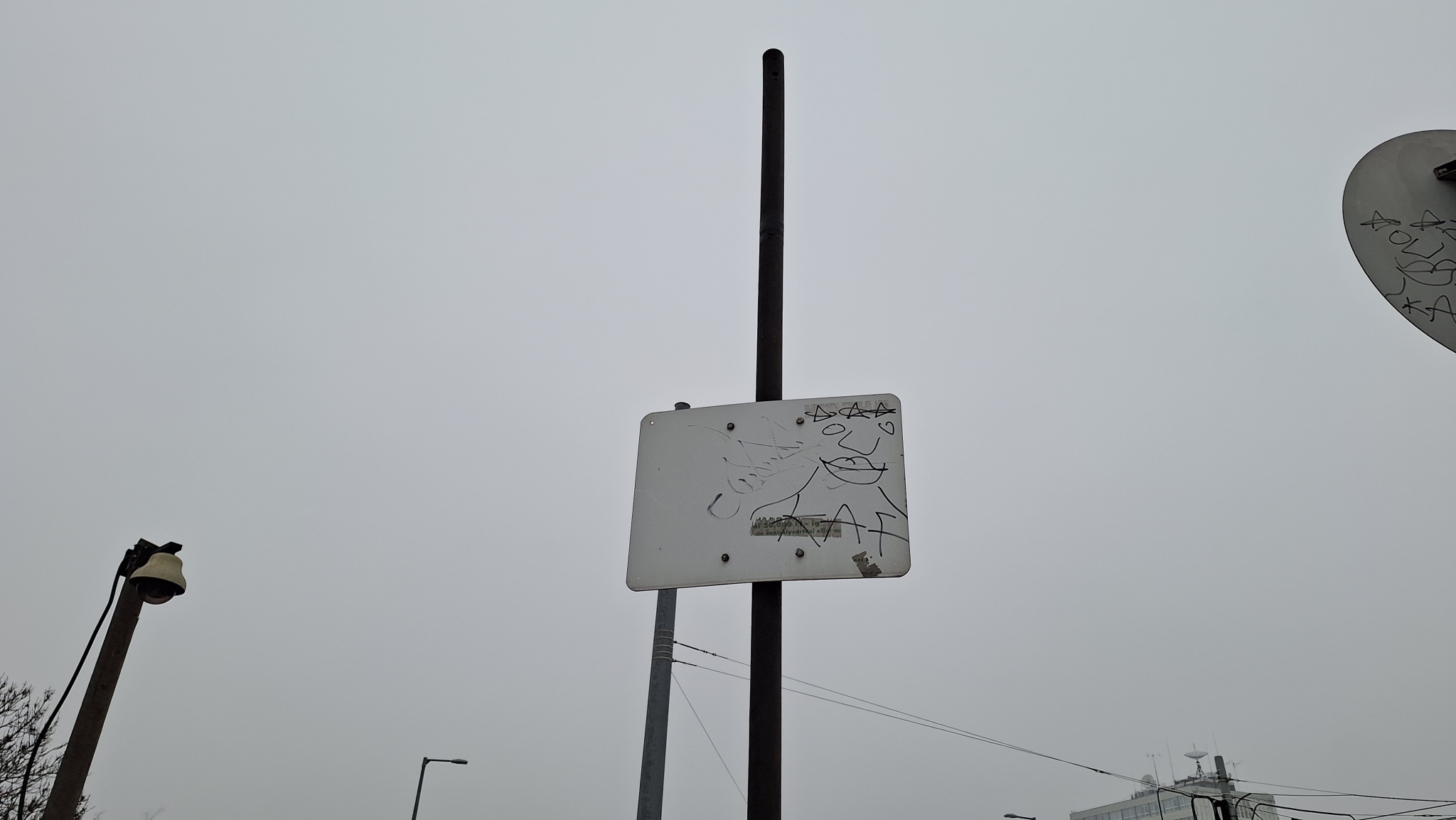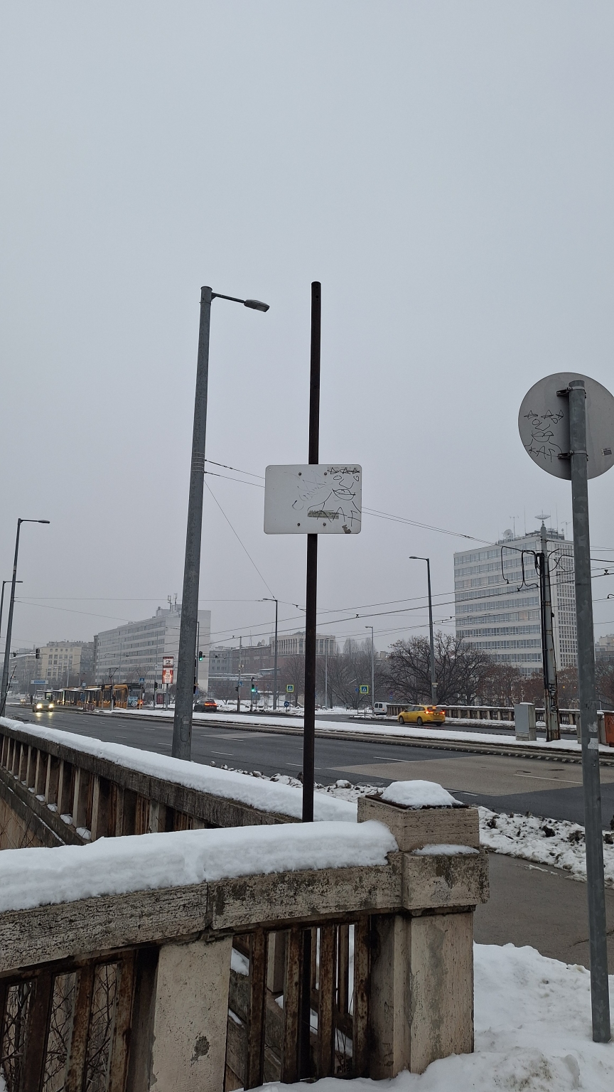 A Petőfi híd budai hídfőjén van egy oszlop, ami csak egy üres táblát tart. A Google Térkép alapján egykor térfigyelő kamerákat is tartott, de mára láthatóan funkcióját vesztette.