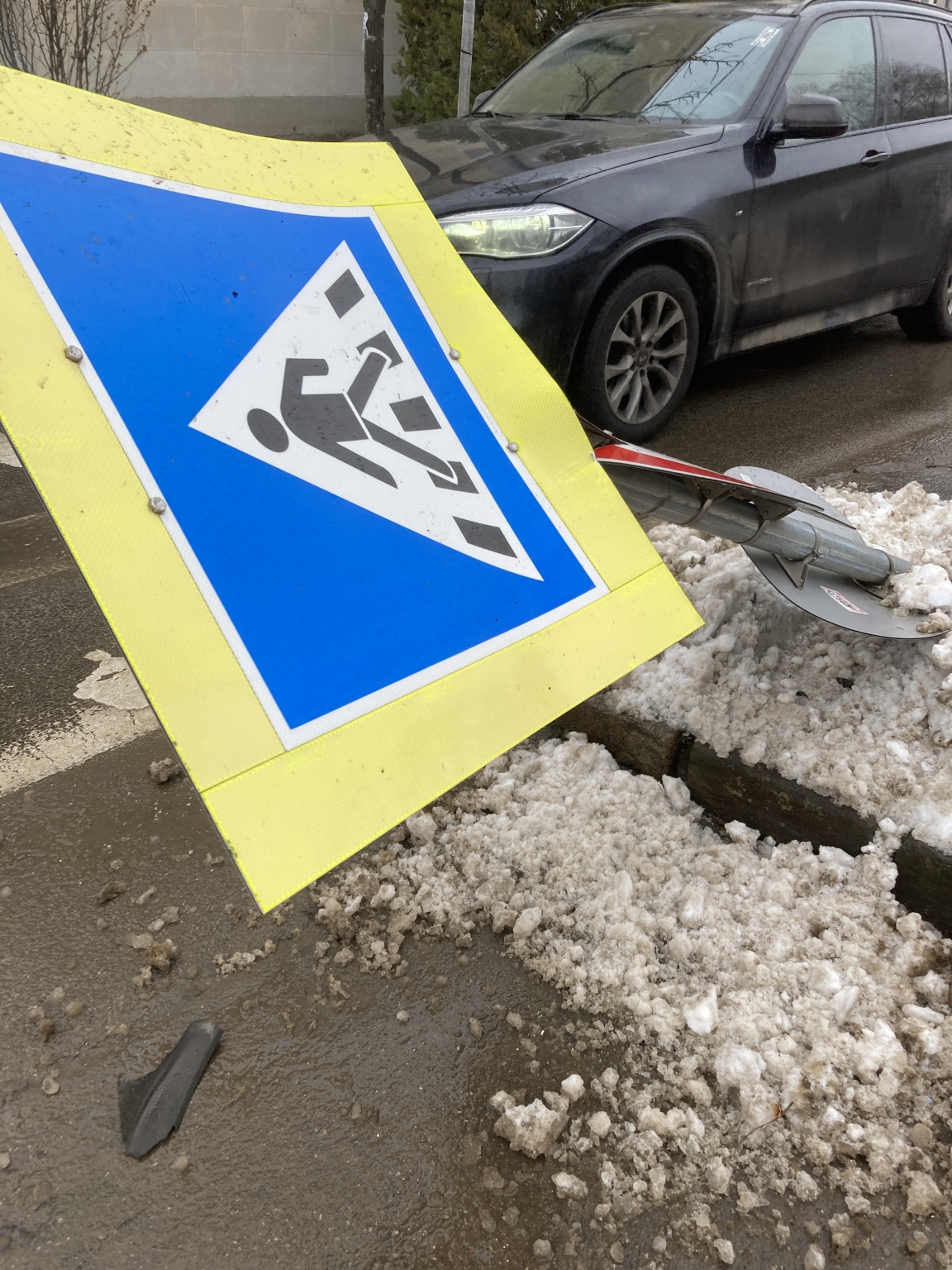 Éjszaka egy autó kidöntötte a kispesti Templom téri járdasziget tábláját.
