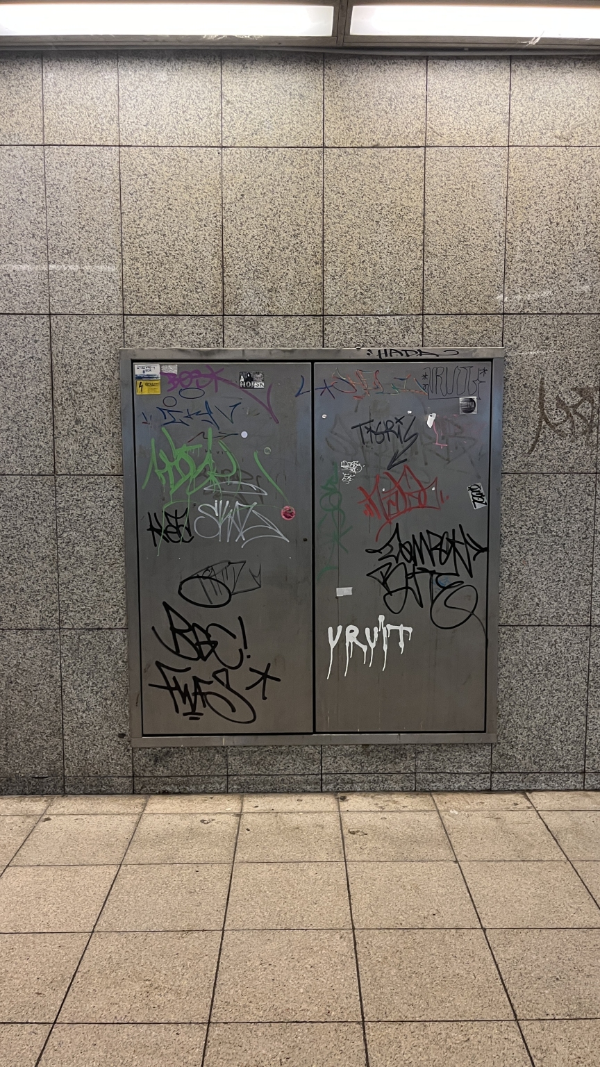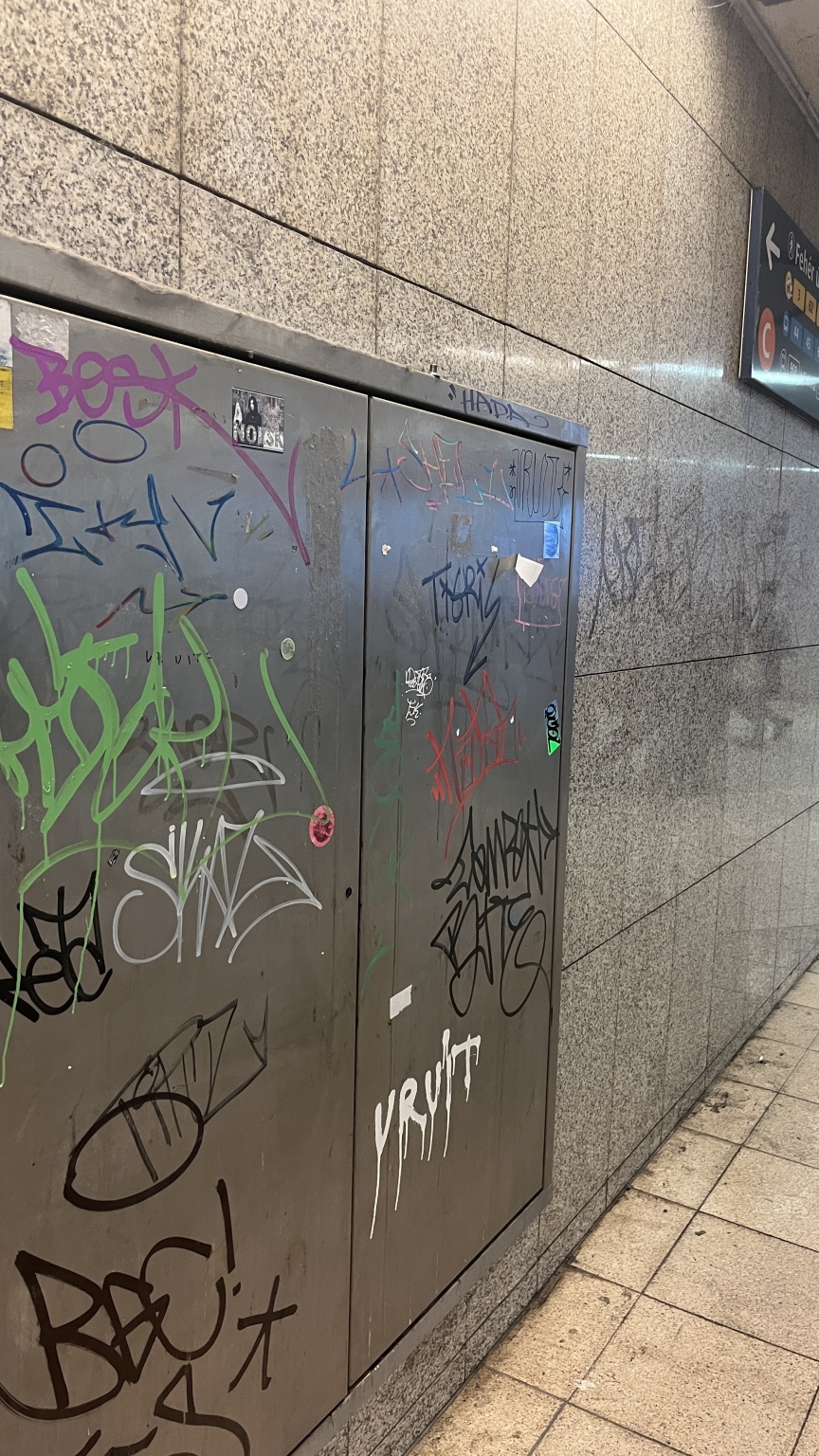 Az Örs vezér tere aluljáró ‘C’ kijáratánál található BDK közműszekrényt graffitivel beszennyezték.