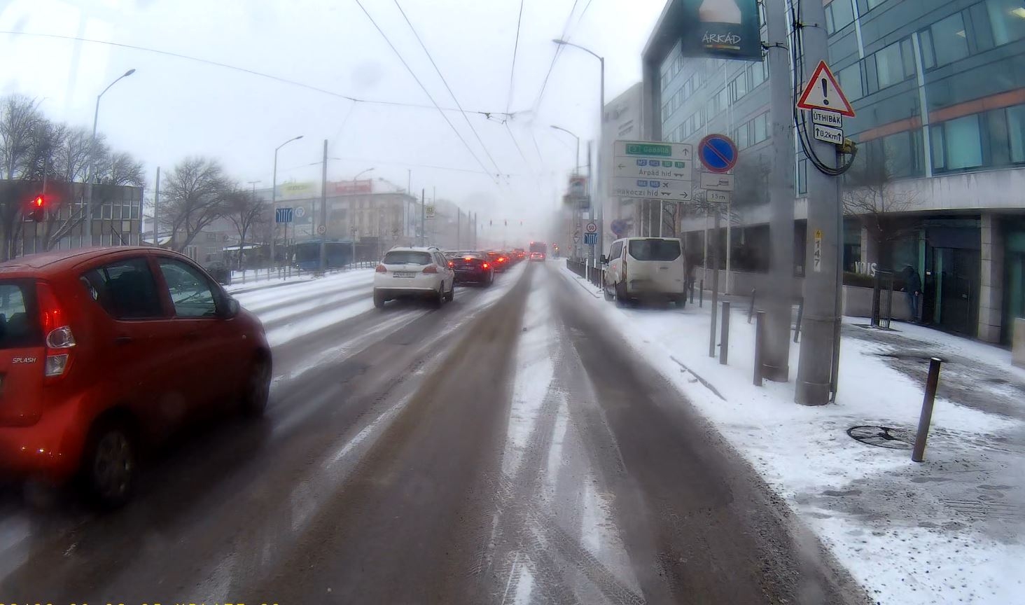 A Kerepesi úton nagytestű járműnek esélytelen kikerülni ezen újkeletű, kicsi, de mély kátyúkat.