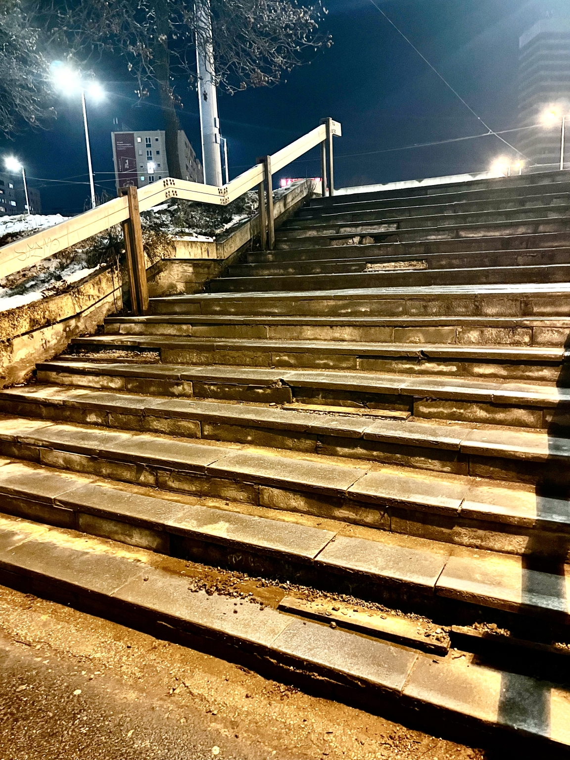 Széteső, balesetveszélyes lépcső.