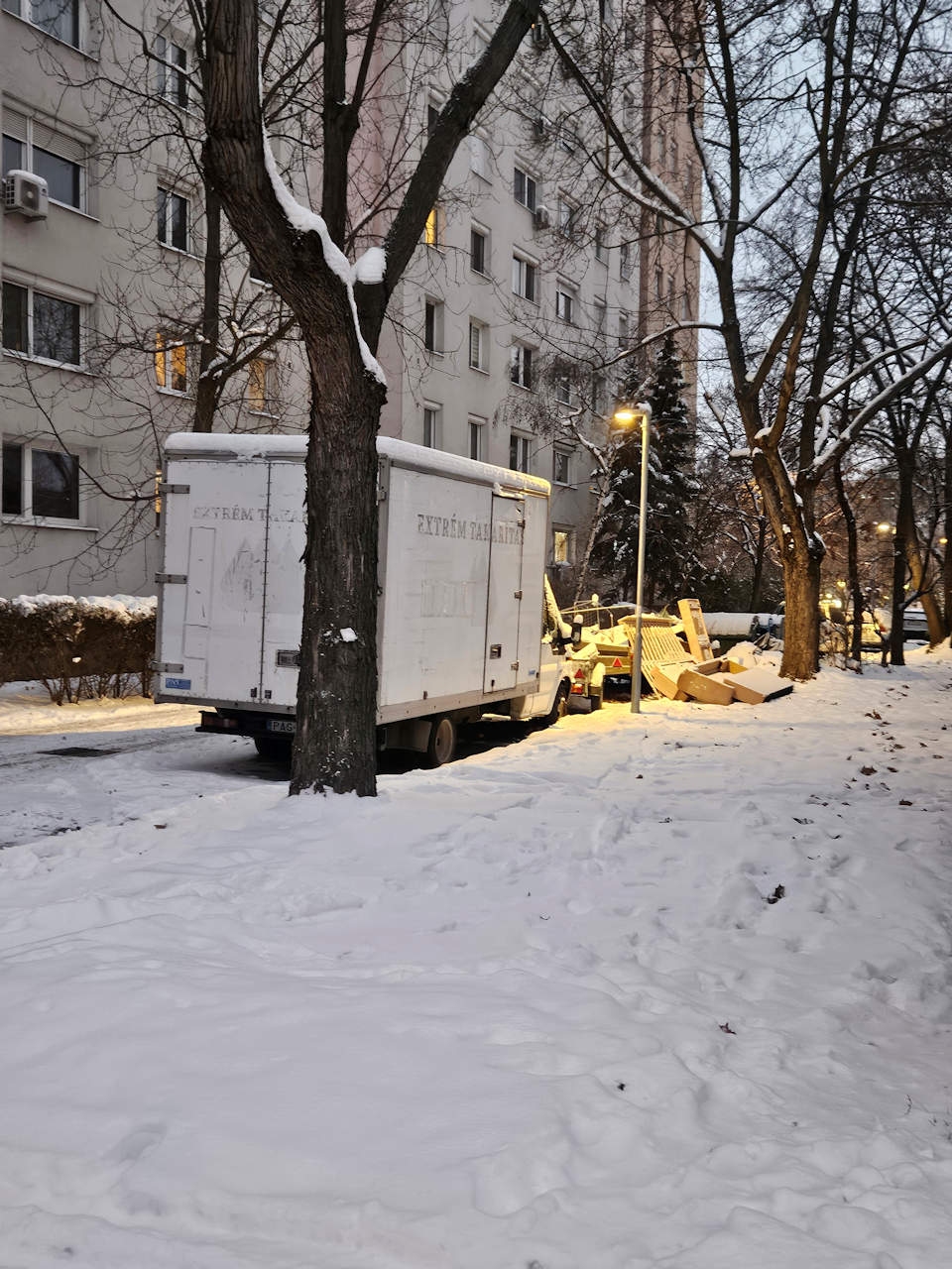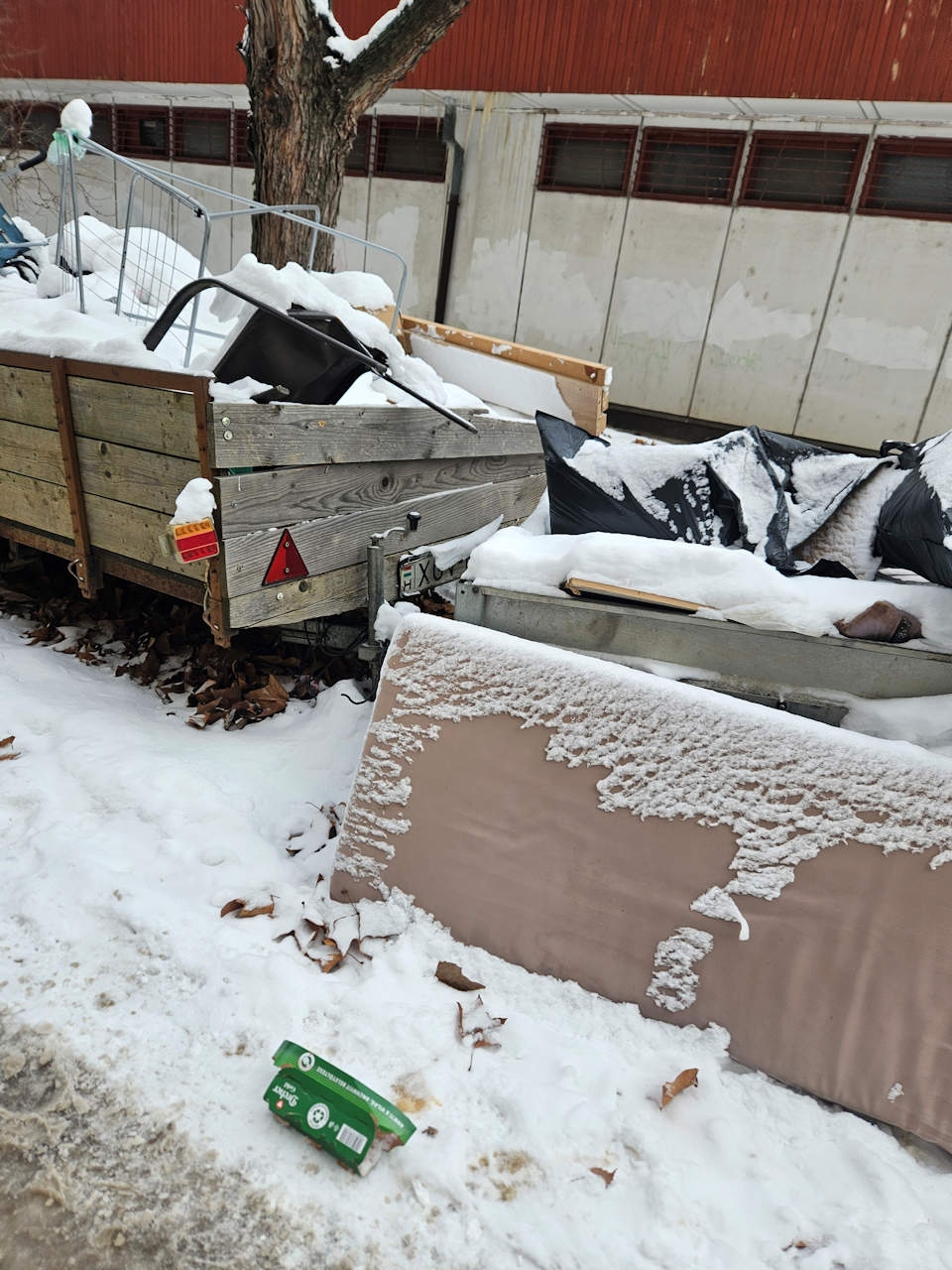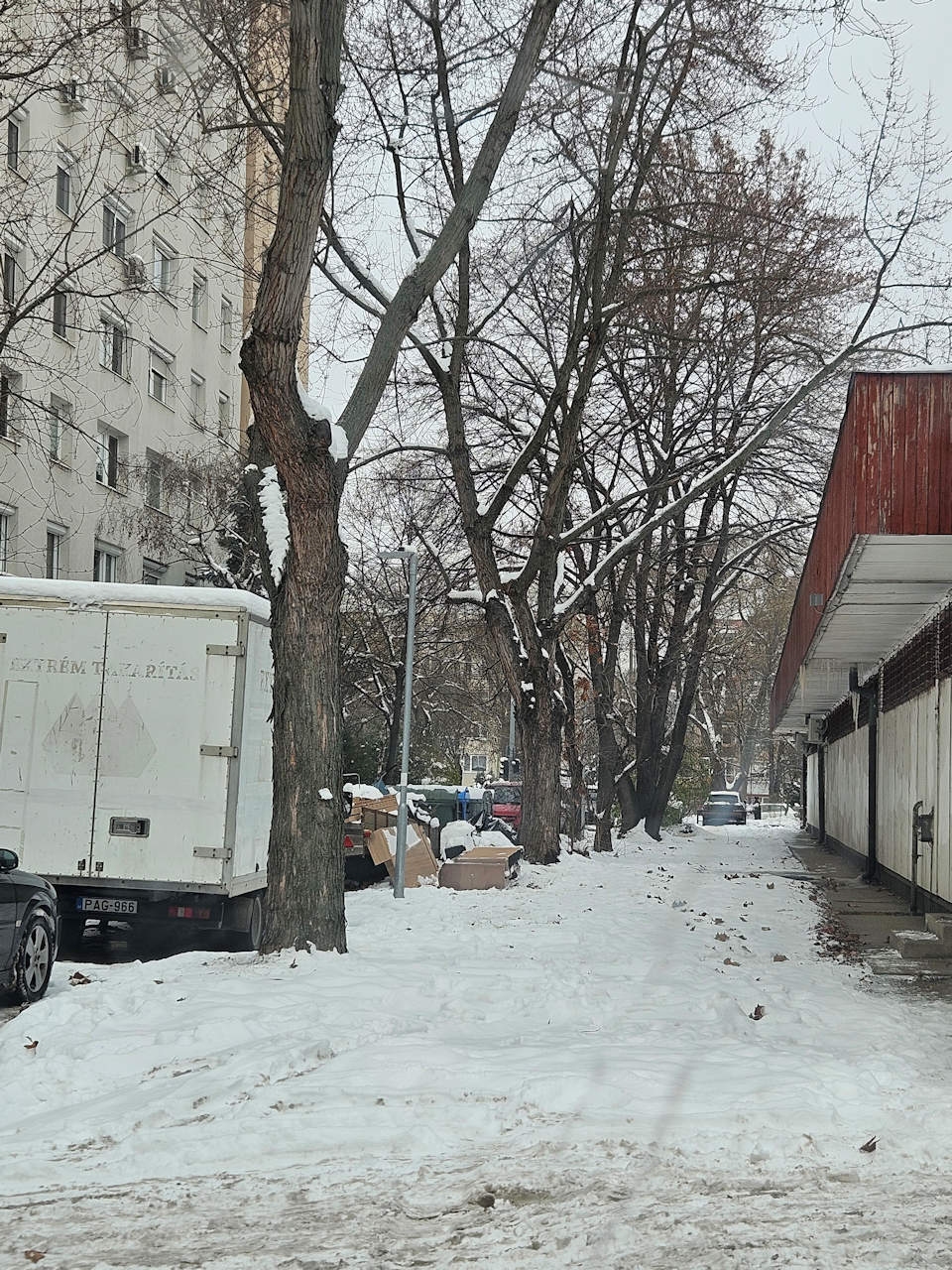 A Pesti u 149. ház mögötti szervizúton forgalomból kivont Ford tranzit és lejárt műszaki vizsgás (XGV67.) utánfutó van elhagyva.