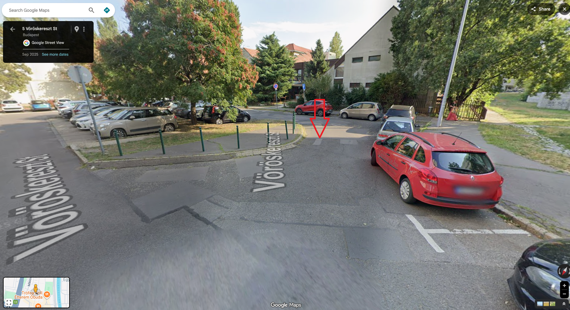 Pontos hely: 1033 Budapest, Harrer Pál u. 10. ház mellett délre, a Vöröskereszt utcai parkolónál.