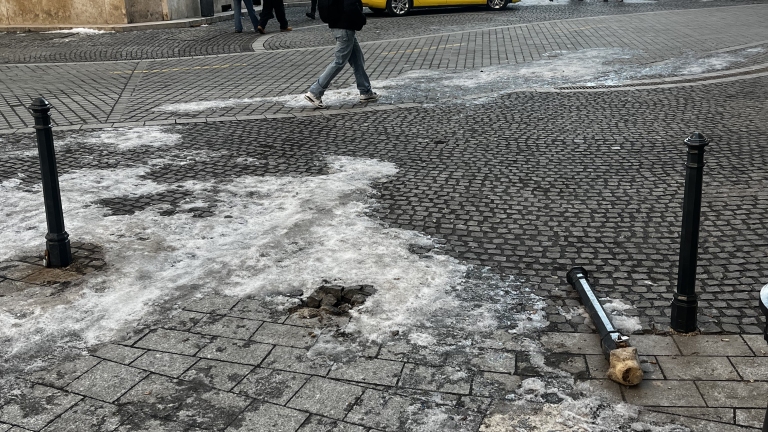 Az elmúlt héten a túloldalon ki is döntötték az egyik pollert.