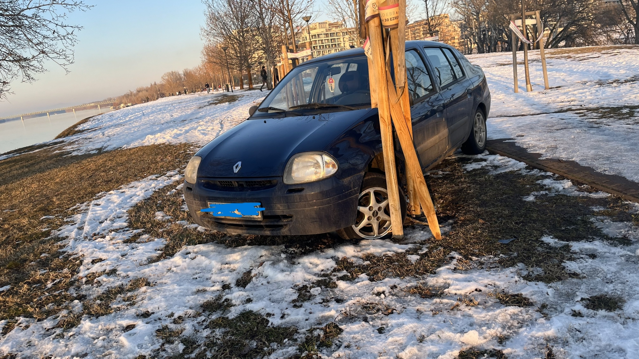 Marina parton az autó utaktól távol, a Foka öböl csúcsában egy magára hagyott, elakadt és összetört Renault autó van a fűben.