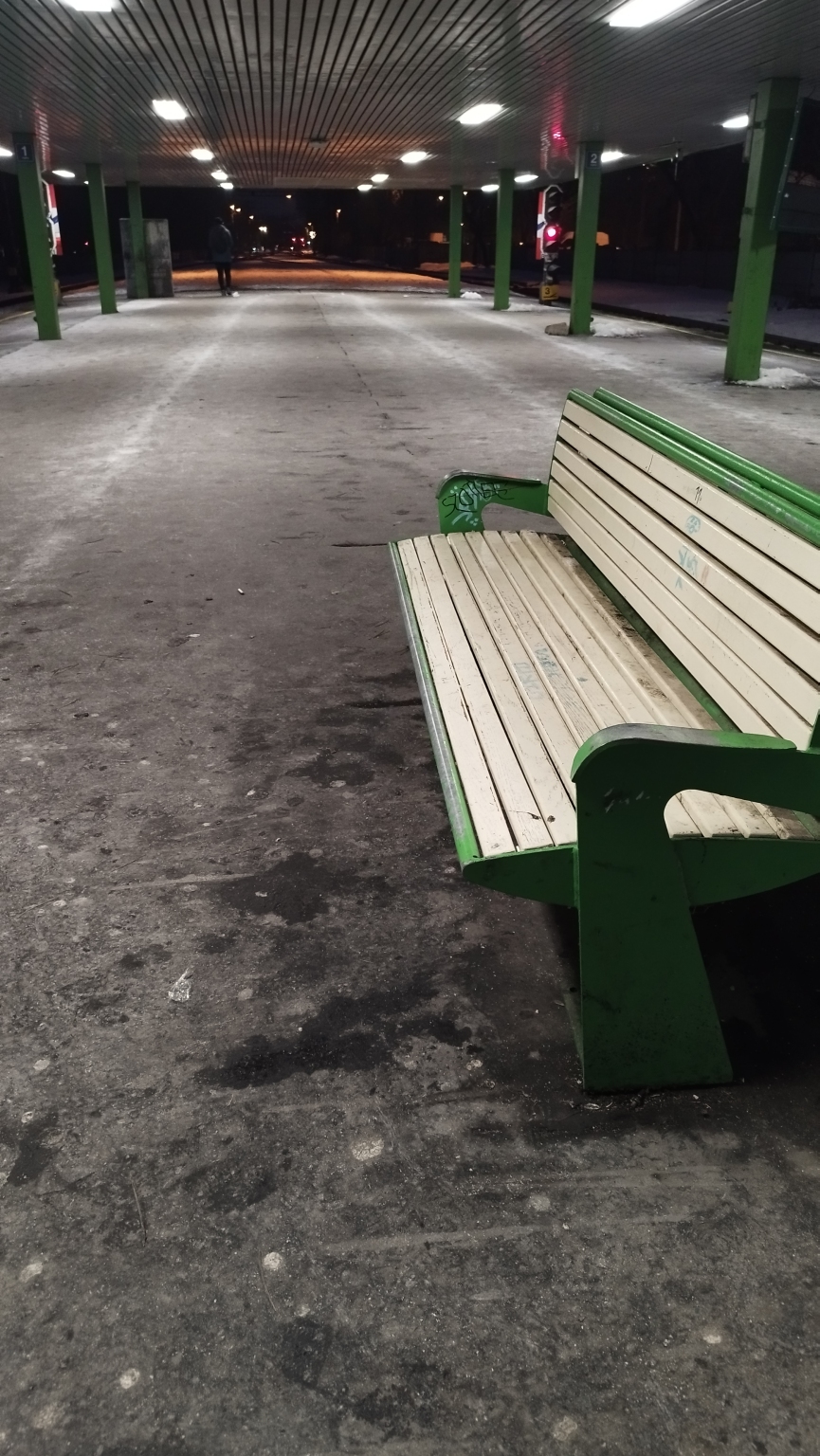 Békásmegyer HÉV állomás leghátsó padpár 1-es vágány felé néző padja.