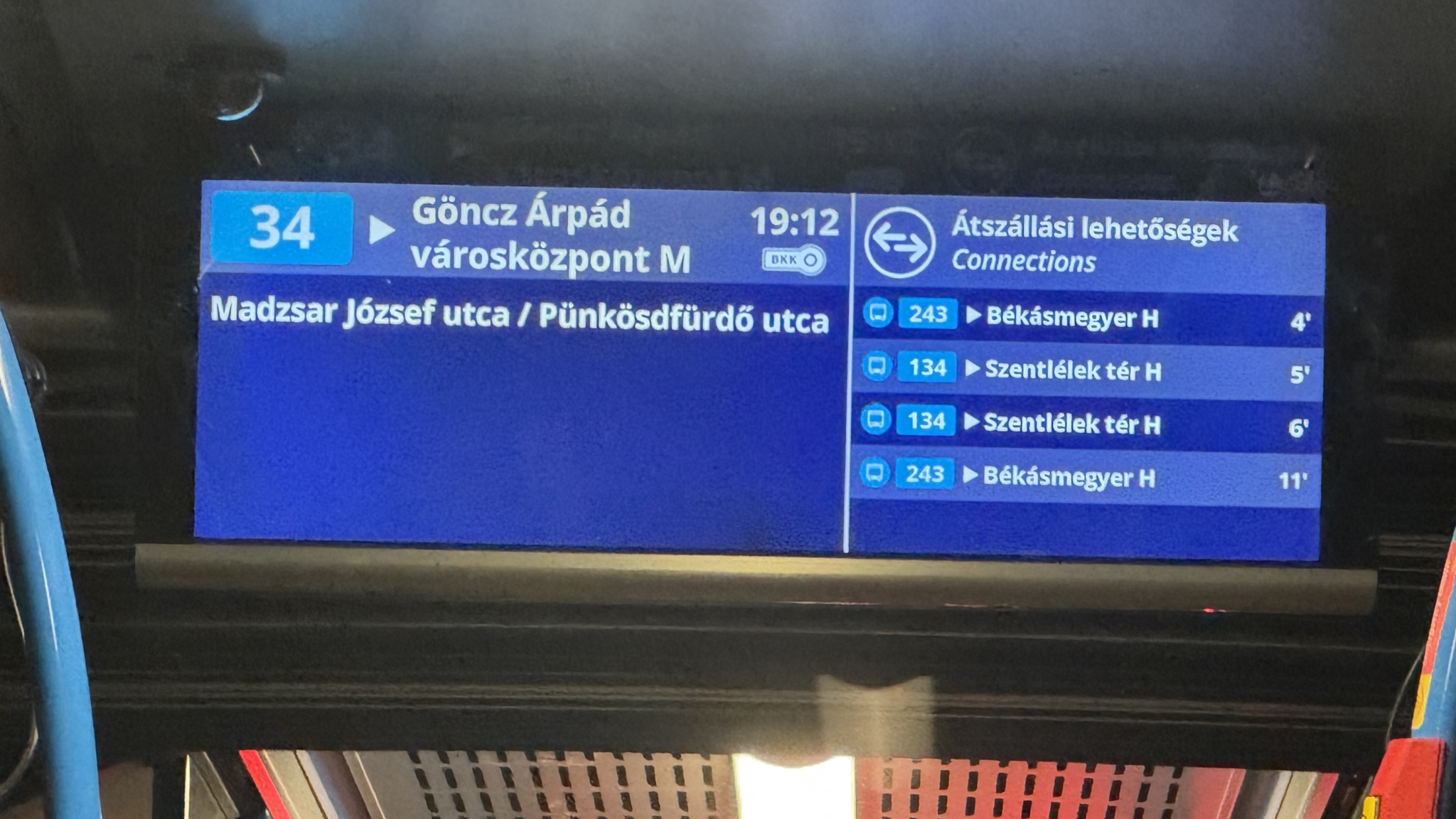 A 243-as busz körjáratként funkcionál. A 34-ről átszállás esetén megtévesztő a Békásmegyer H irány, mivel onnan indul és a Pince köz és Donát utca felé megy először, így azokat a célállomásokat több haszna lenne kiírni. Intézkedésüket köszönöm szépen előre is!
