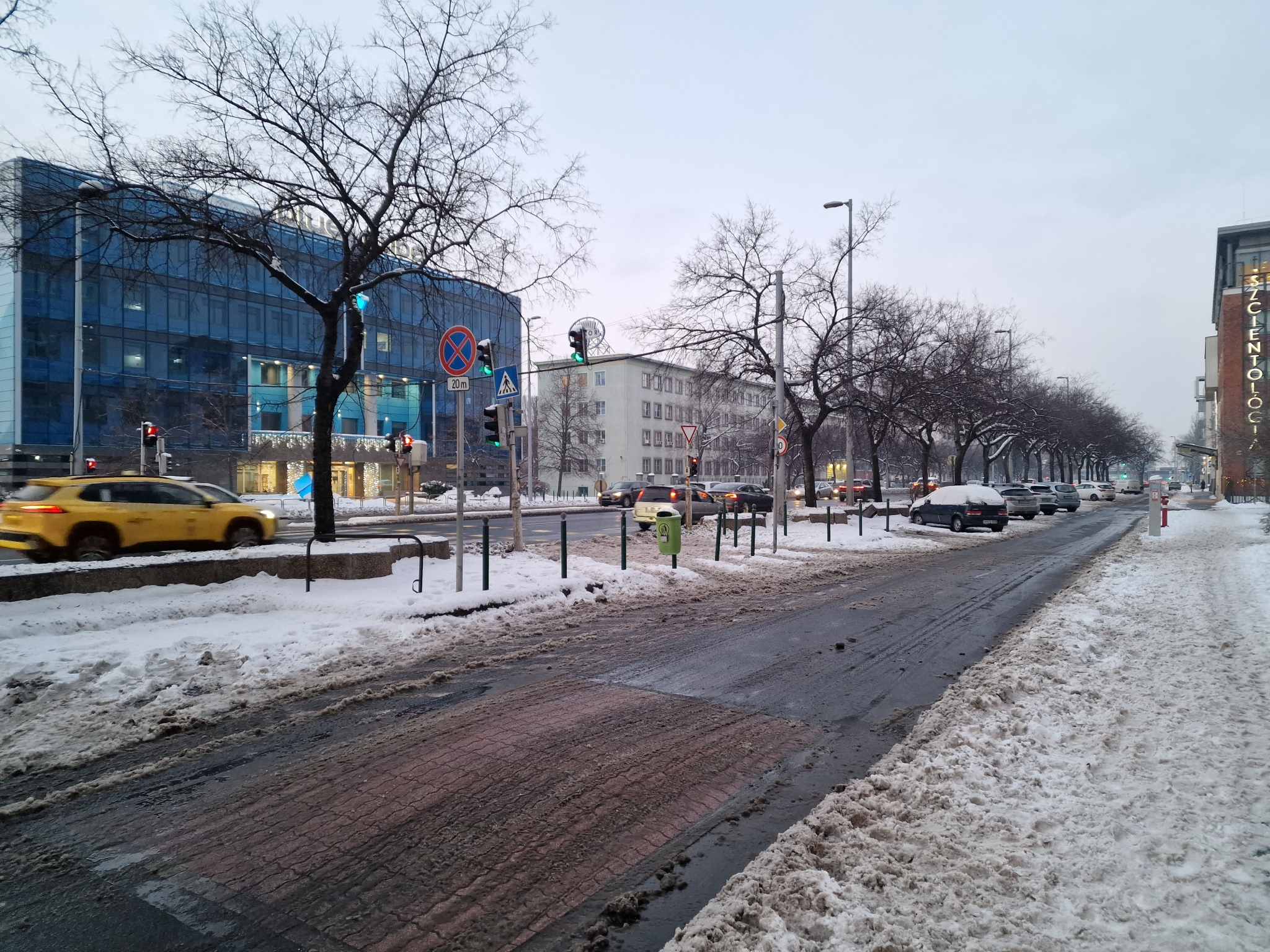 A 1138, Budapest Váci út 165. előtti szervízúton a gyalogátkelő felfestése elkopott, a táblája pedig eltűnt.