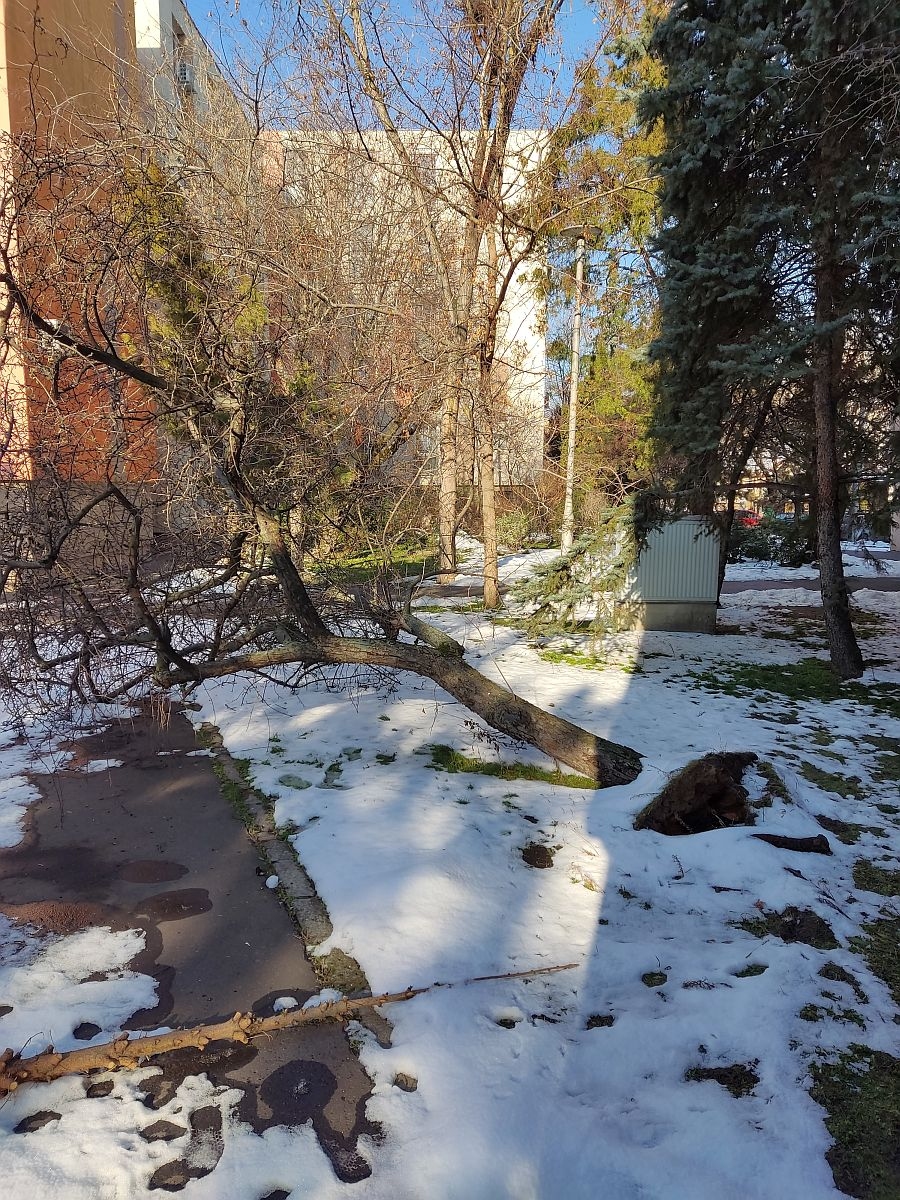A képen látható kisebb fa kidőlt, rá a járdára, ez akadályozza a gyalogosforgalmat. Szeretném kérni a kidőlt fa elszállítását.