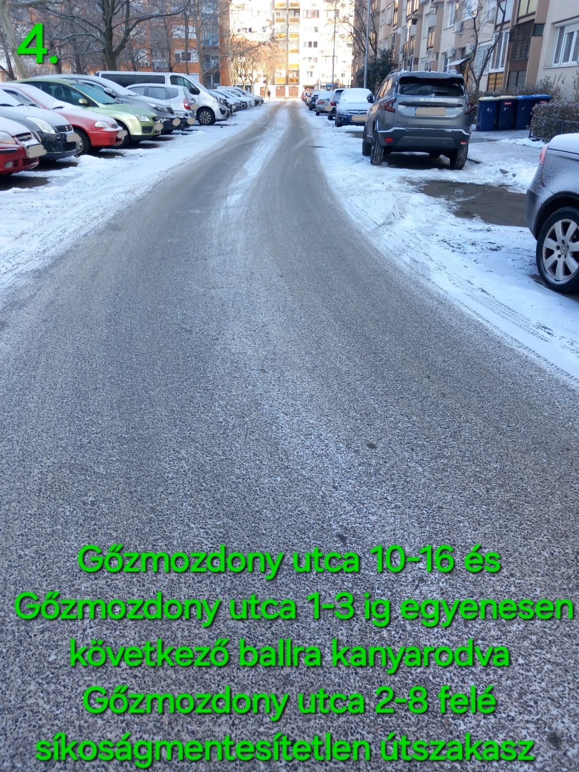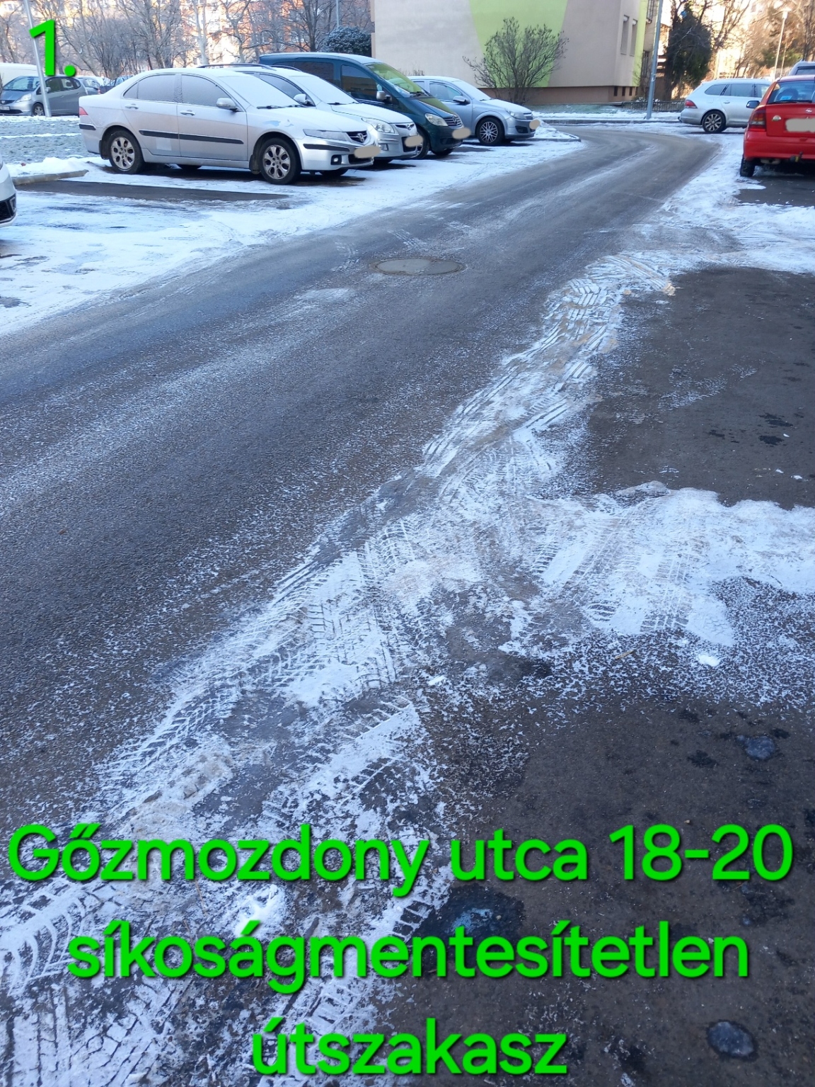 Értesítem hogy Gőzmozdony utcai útszakaszon nincs síkoságmentesítve az útszakasz