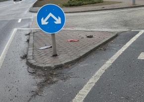 Éjjel kidöntötték az irányjelzőtáblát a 1112 Bp., Budaörsi út 177-179 között