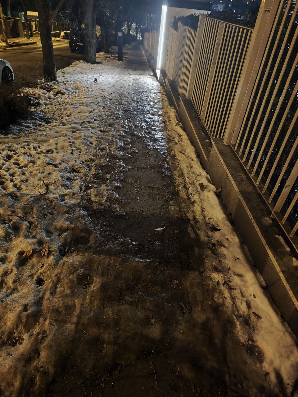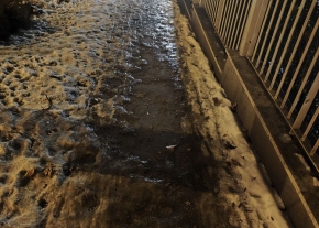 1022 Budapest, Felvinci út 2-4. számok közötti (feltehetőleg a 2.számhoz tartozó) járdaszakaszon 2025.dec.30. óta nem takarították el a lehullott csapadékot, nem csúszásmentesítették a járdát.