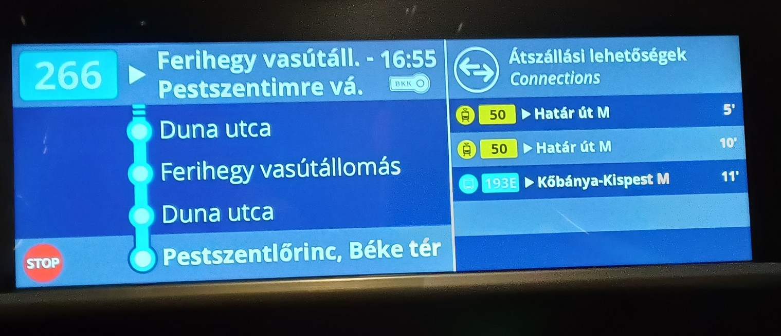A Gyergyó utcánál olyna járatokat mutat a kijelző, amik a közelben sincsenek, a Béke téren csak a 193E-t és az 50-es villamost mutatja, pedig más (166, 236, 236A) járatok is vannak.