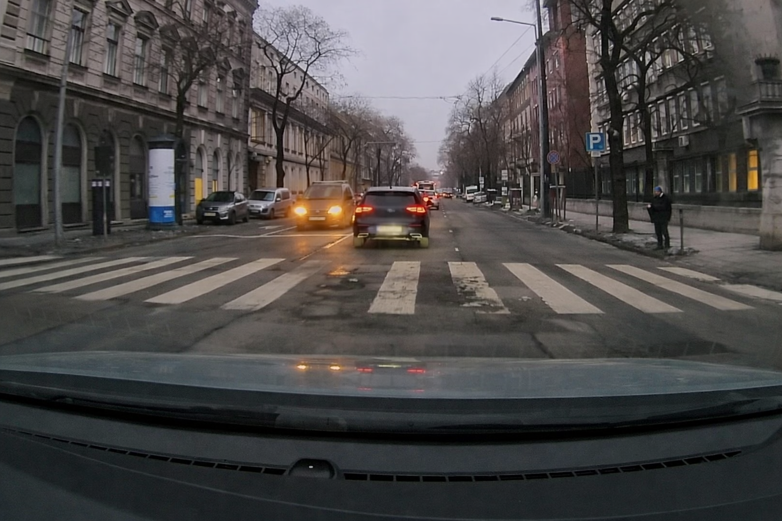 Hatalmas kátyú tátong a Rottenbiller utca és a Péterffy Sándor utca kereszteződésnél.
