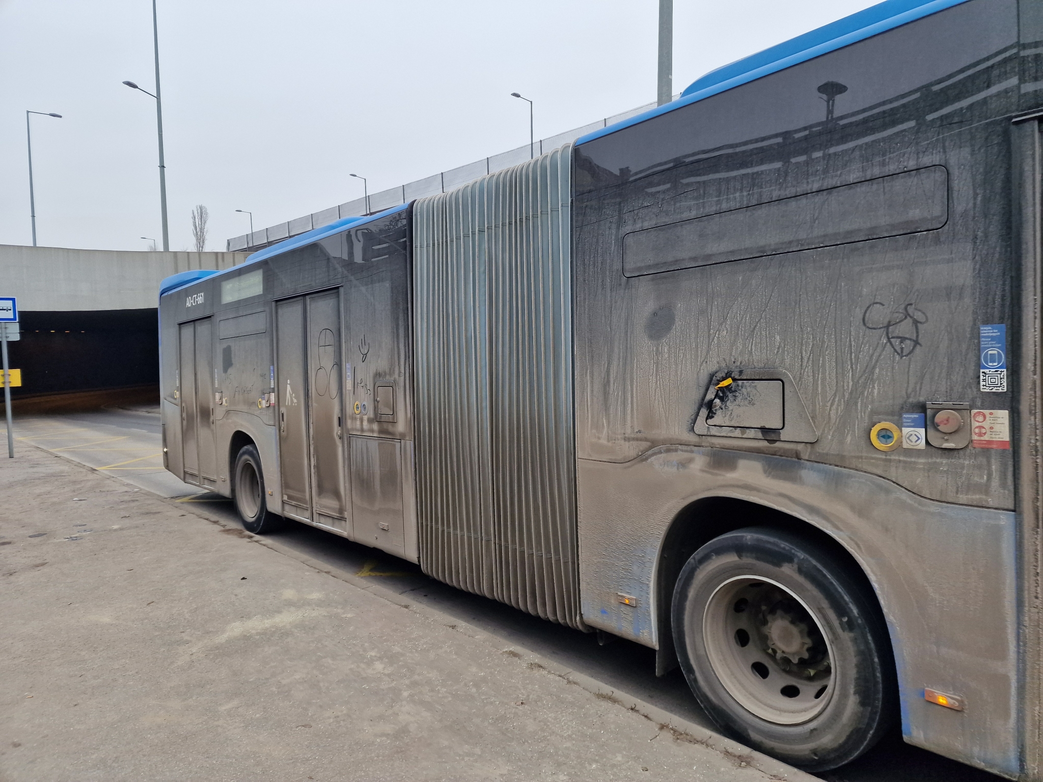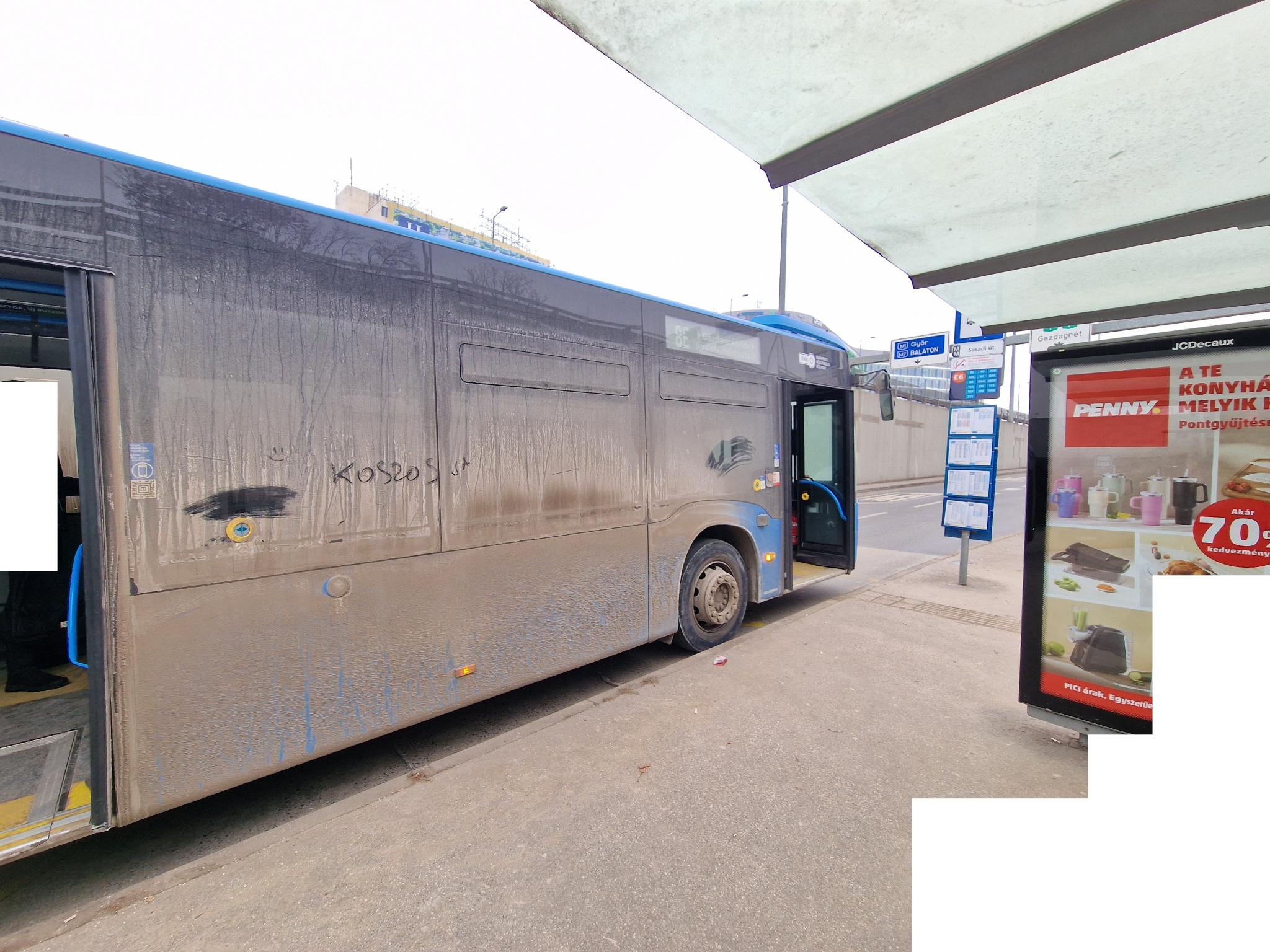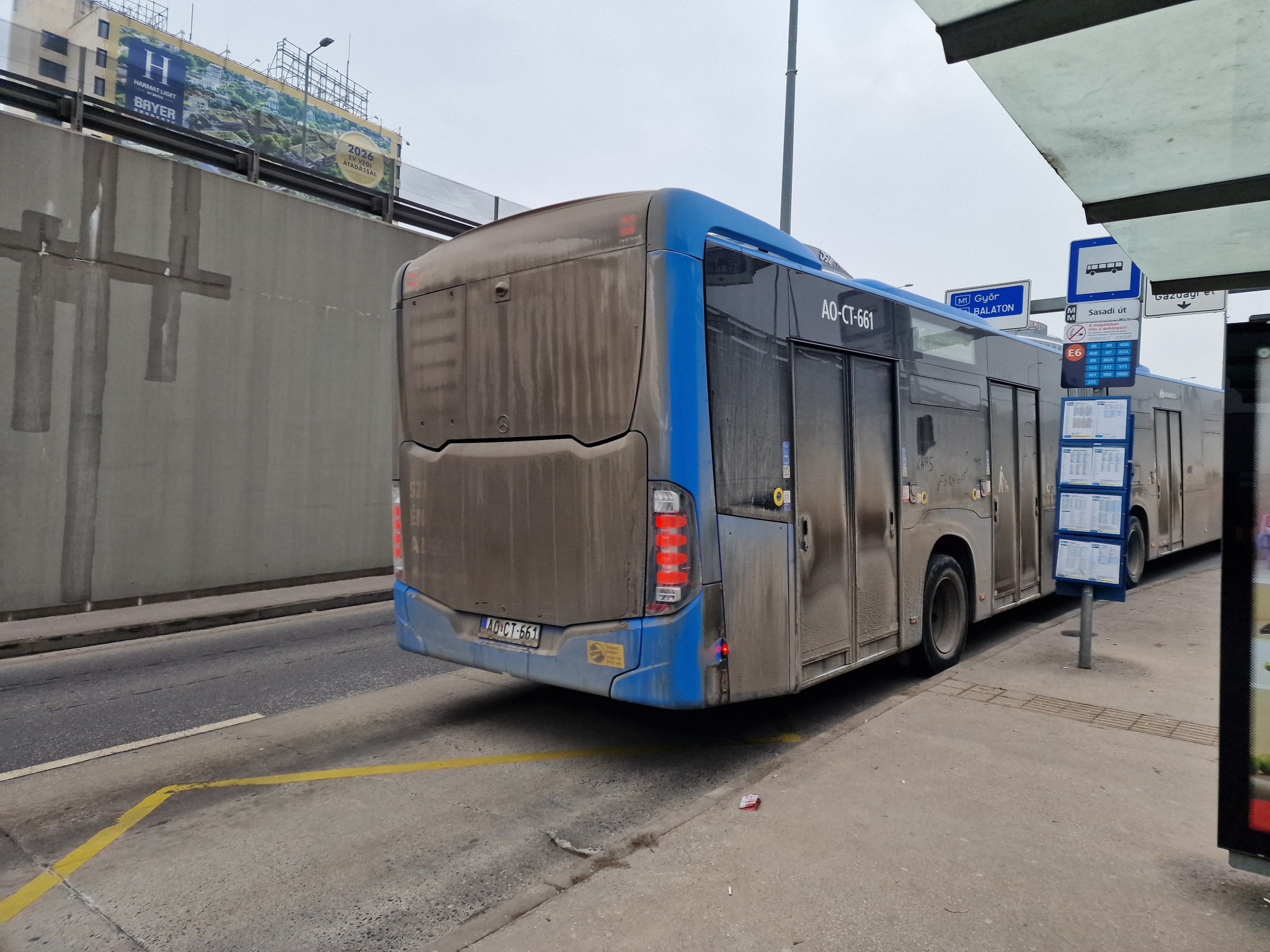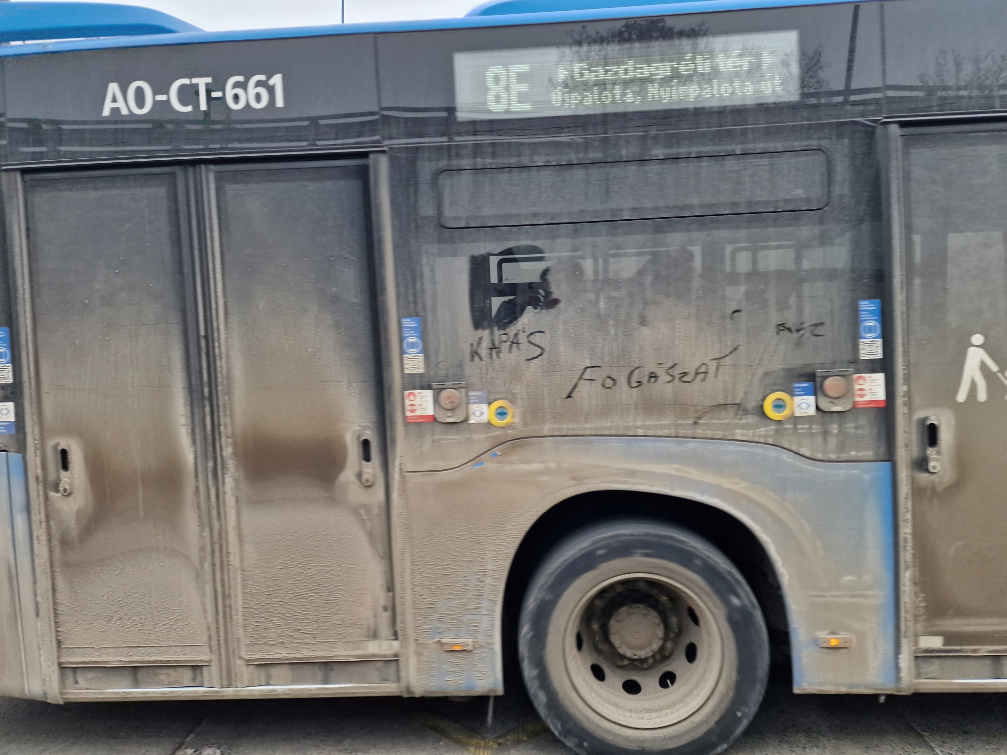 Az AO-CT-661 rendszámú busz összes oldala, összes ablaka tiszta sár, ki sem lehet látni az ablakon. Úgy emlékszem, hogy már január 16-án is ugyanígy nézett ki. 2026. január 22-én 12:40-kor találkoztam a busszal a Sasadi út buszmegállóban.