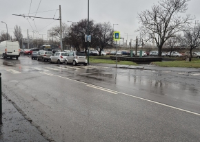 A gyalogátkelőhely egyik táblája 180°os fordulatot vett, ezzel sikerül is megzavarnia néhány autóst aki így a gyalogátkelőn parkolnak. Érdemes lenne visszaforgatni.
