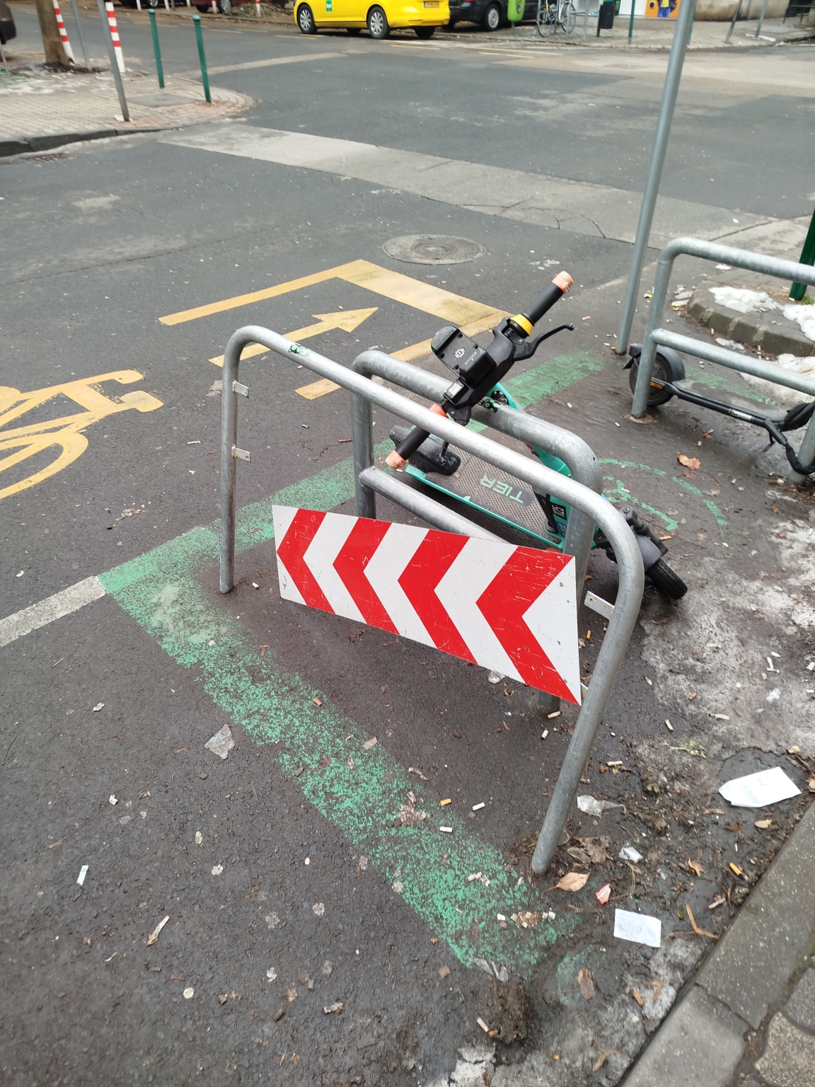 Kidöntött terelő a bolt előtti mobilitási ponton. Köszönjük a javítást.
