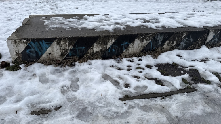 Parkolásgátló beton idomon graffitik