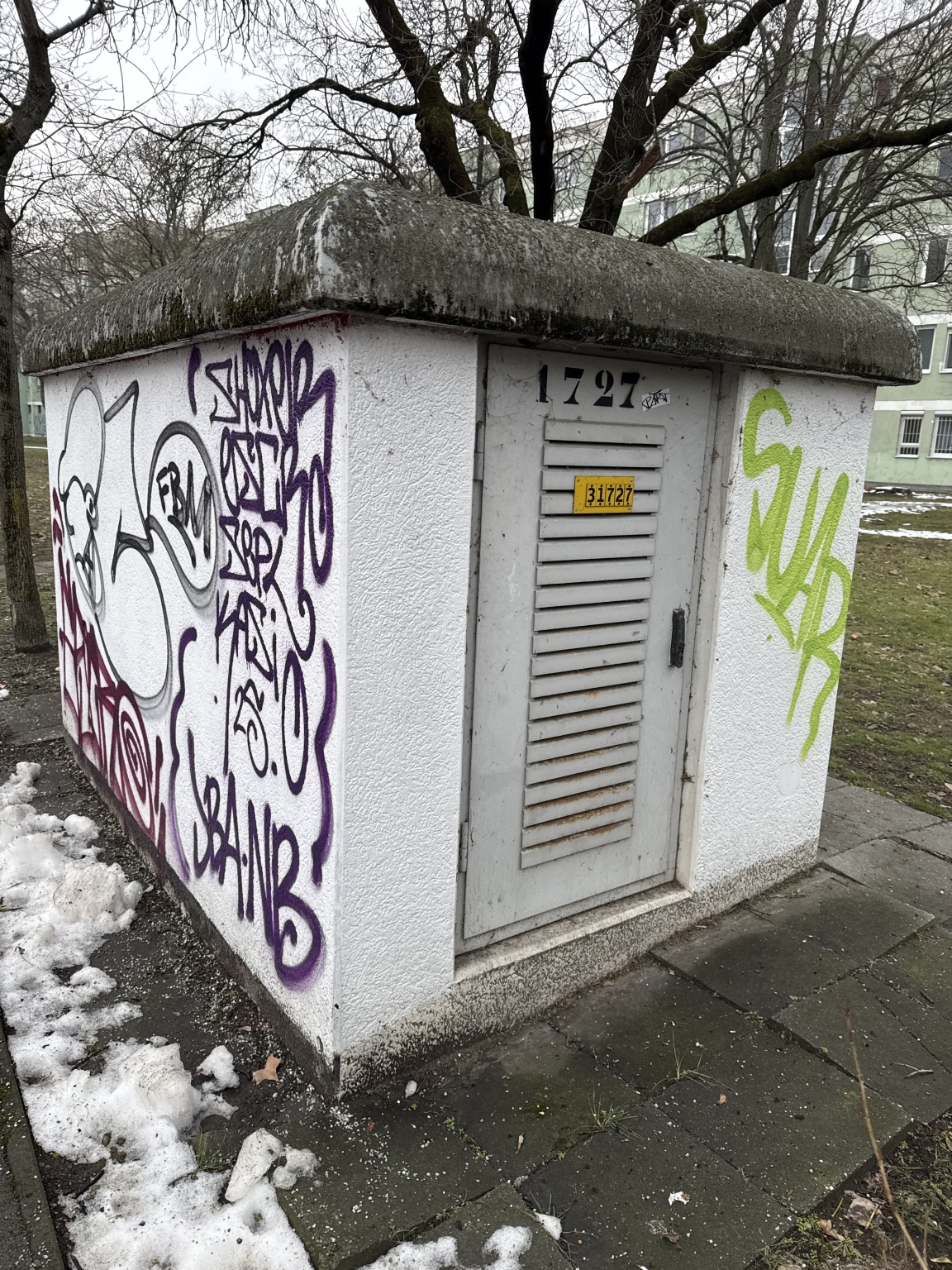 A fehér festés a korábbi graffiti elfedése miatt volt. Most a friss festés is graffitis lett. Kérem a Tulajdonost, hogy távolítsa el a graffitiket és tegyen rongálás miatt feljelentést.