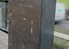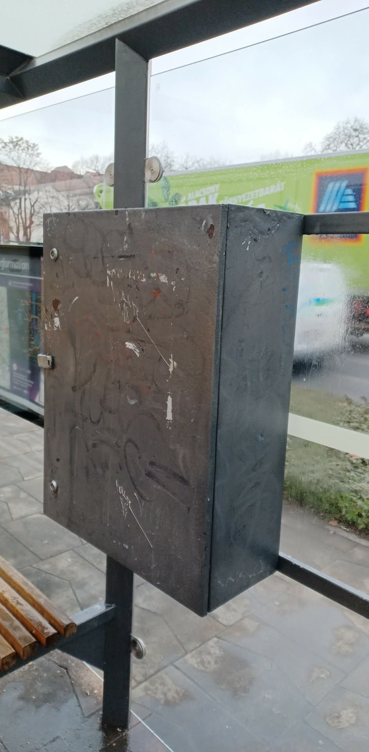 Szeretném kérni a Deák téren, a 47-48-49-es villamosok fedett utasvárójában található koszos doboz takarítását! Köszönöm!
