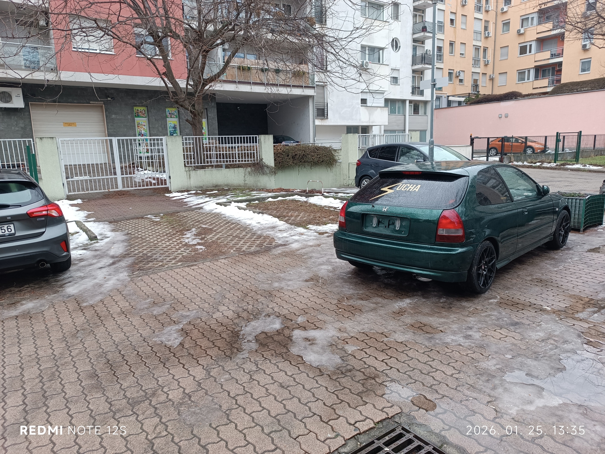 REndszám nélküli autó úgy parkol, hogy nem használható a parkolóhely.