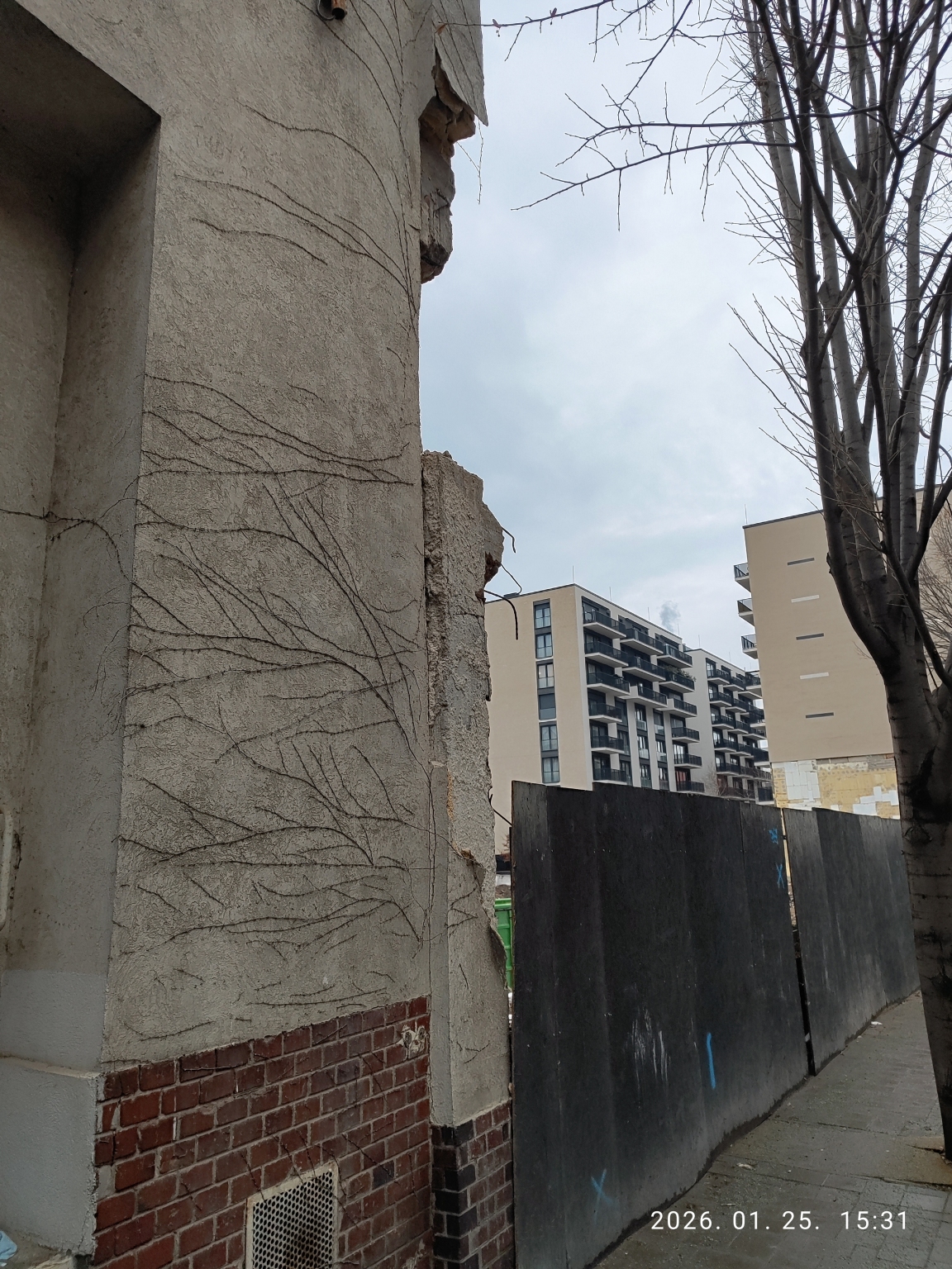 Bontás alatti épület melletti életveszélyes jardaszakasz