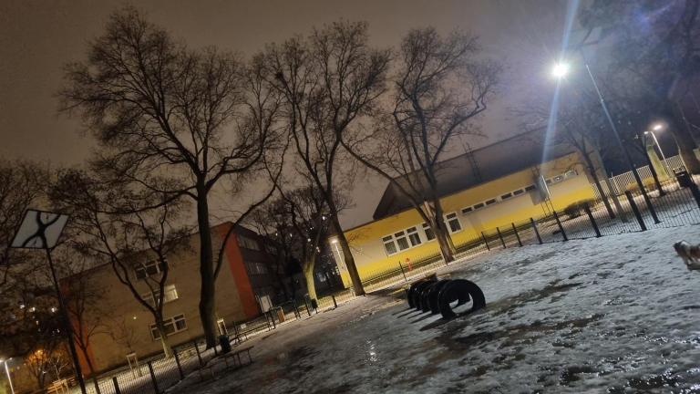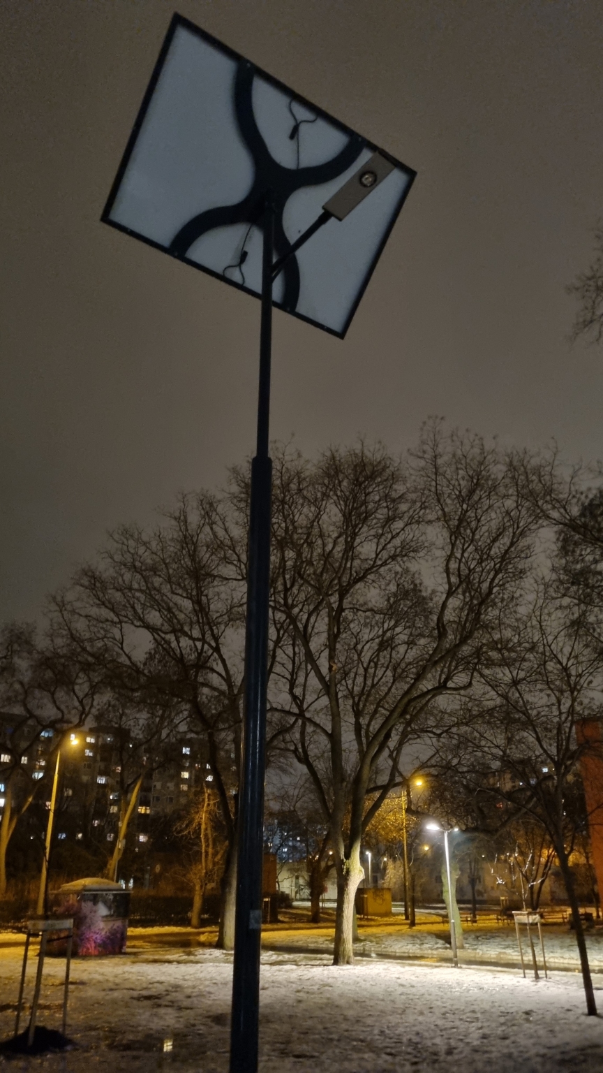 Semsey parkban, Brutus futtató 3 napelemes világítasa közül nem ég az, ami legközelebb vana nyilvanos illemhelyhez.