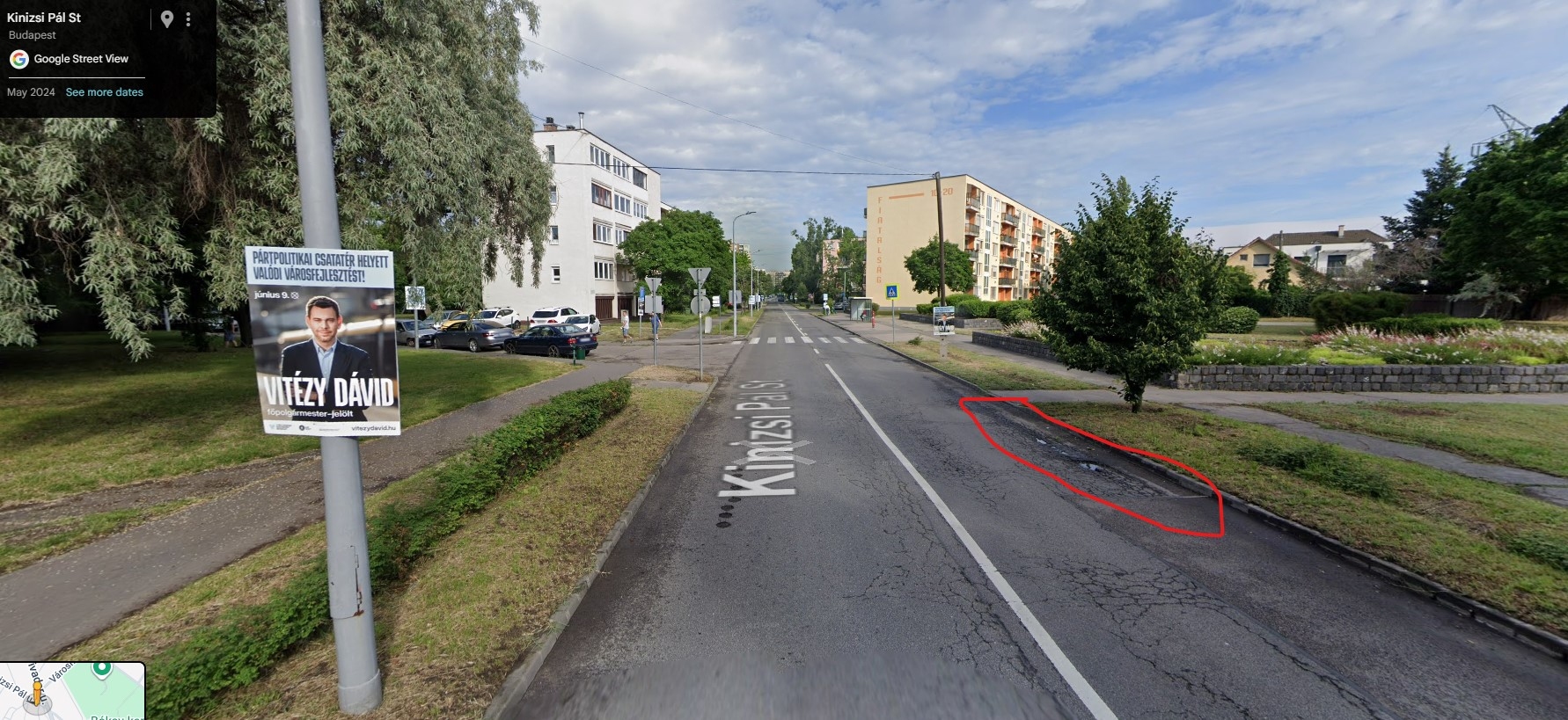 Több kátyú a Margó Tivadar és a Baross utca közötti részen. A képen jelzett három kátyú már 2024-ben is látható az utcaképen.
