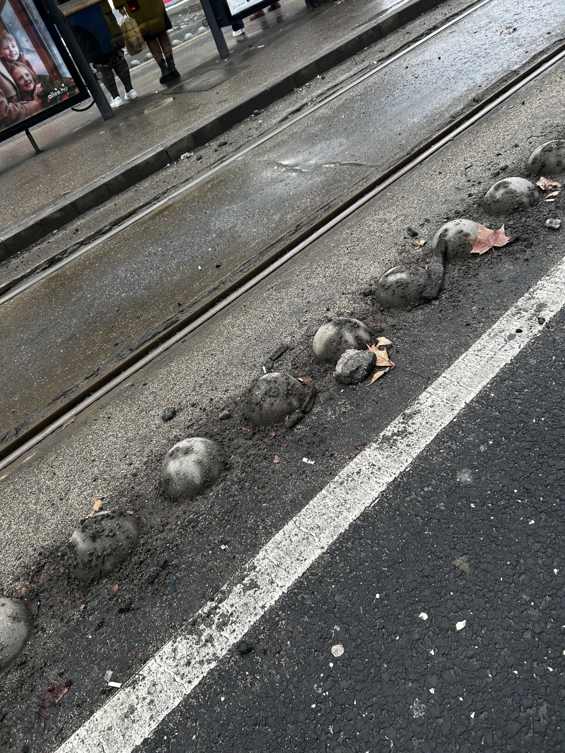 A hó elolvadása óta a Haller utca összes villamos síne és villamosmegállója sárral/földdel szennyezett, a villamosmegállókban minden csupa szemét, betondarab, cigarettacsikk, lsd. mellékelt képek.