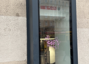 A Széll Kálmán téren található partner üzletük ablakait, logóját és bejáratár graffitivel, matricákkal beszennyezték. Kérem az üzlet bejáratának, ablakainak takarítását!