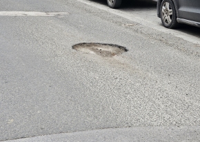 Megsüllyedt, széttöredezett úttest