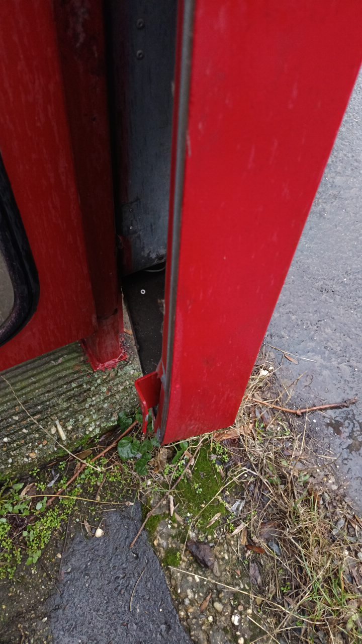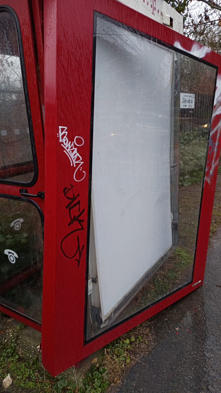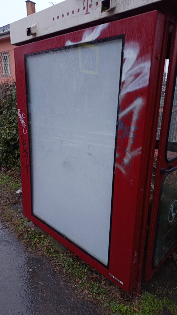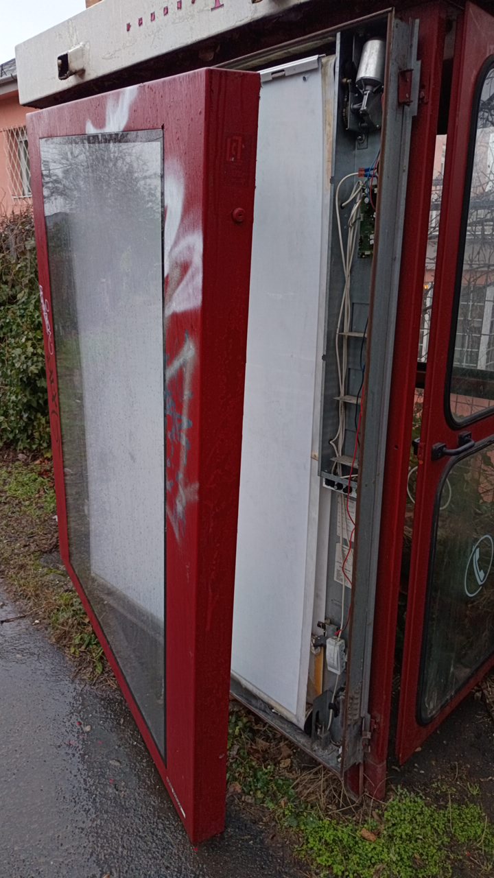 Leszakadt, kinyílt telefonfülke keret