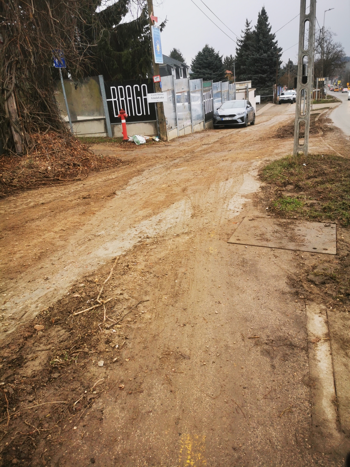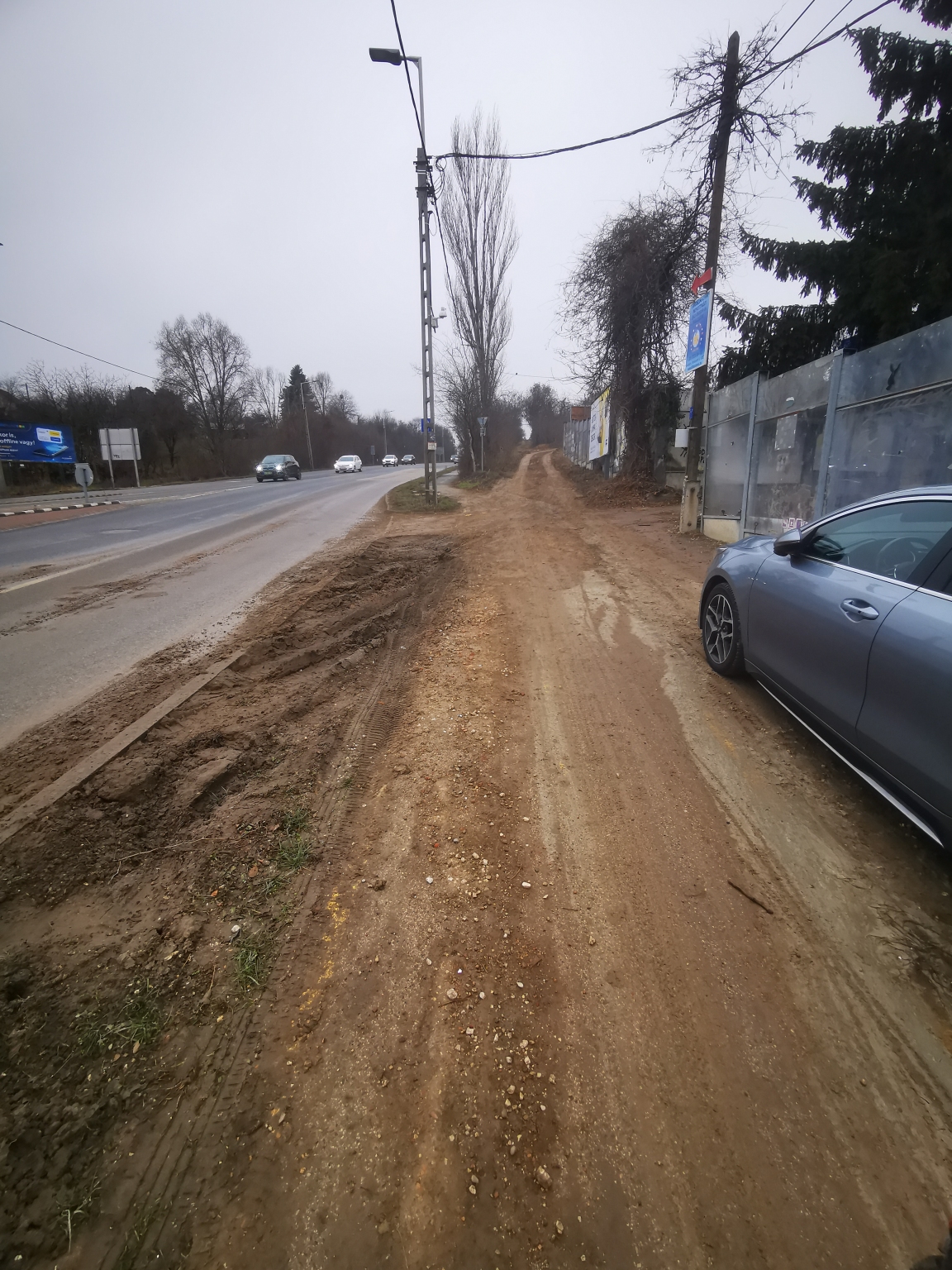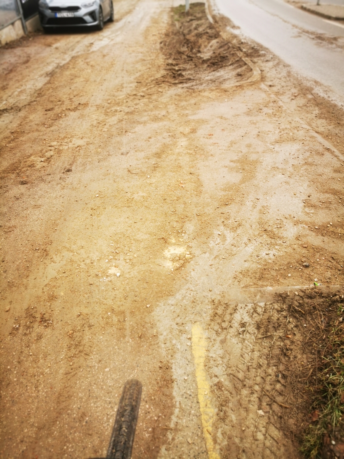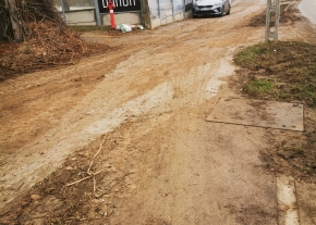 „Még mindig (már megint?) koszos, murvás, sáros az út. Az építkezés miatt a gépjárművek keresztül járnak rajta, és folyamatosan hordják fel a sarat. Eközben az úttest és a kerékpárút közötti zöld sávot is tönkretették. Mély, sáros keréknyomok vannak rajta.”