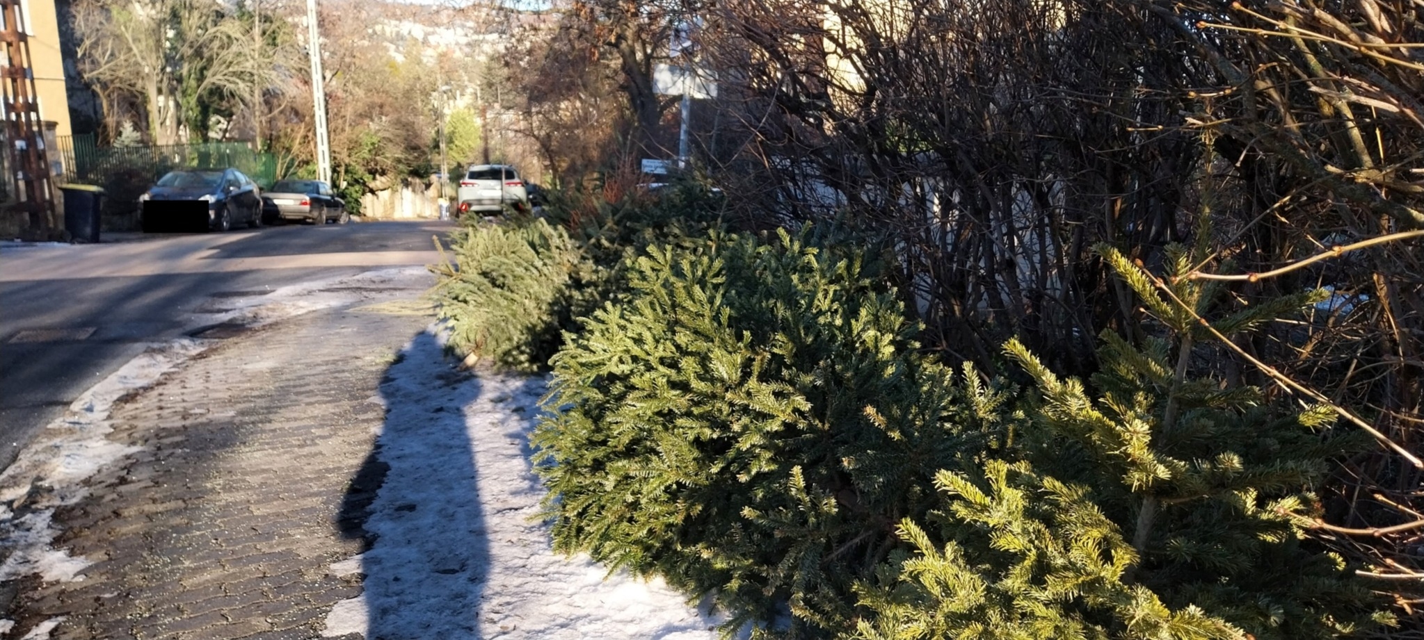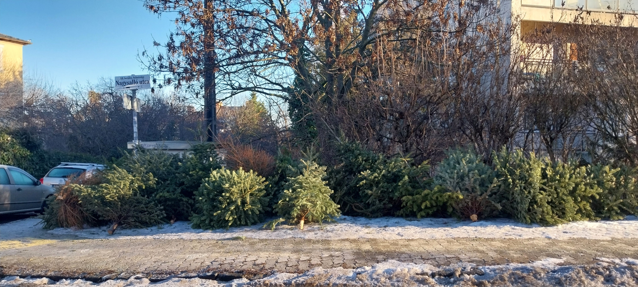 "Meddig gyűjtsük még" jeligére várjuk a fenyőfák elszállítását, hetek óta csak gyűlik, a sarok megtelt.