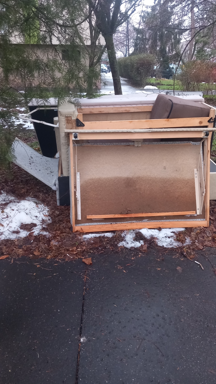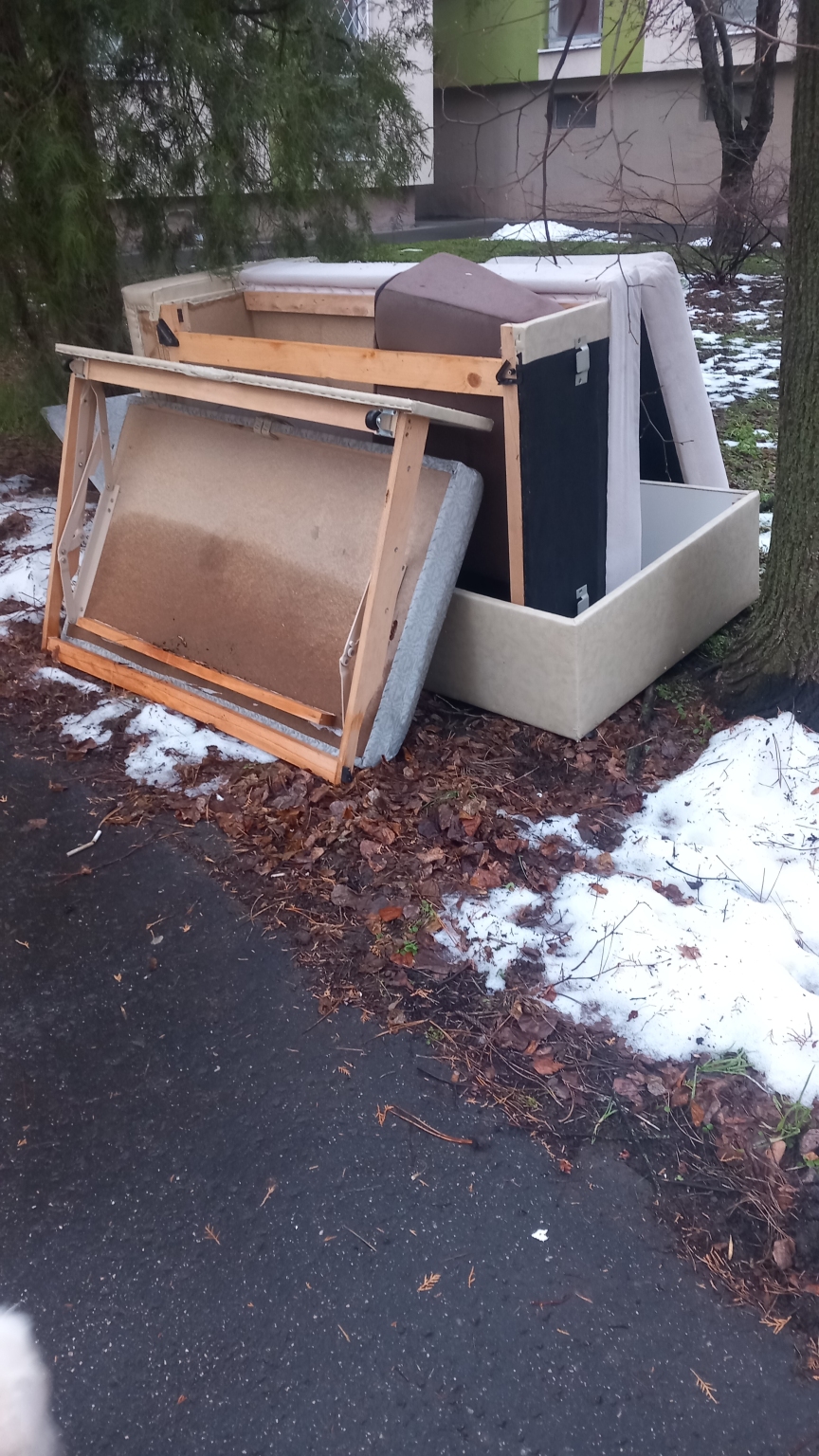 Kapujába egy nagyméretű ágyat tettek ki.