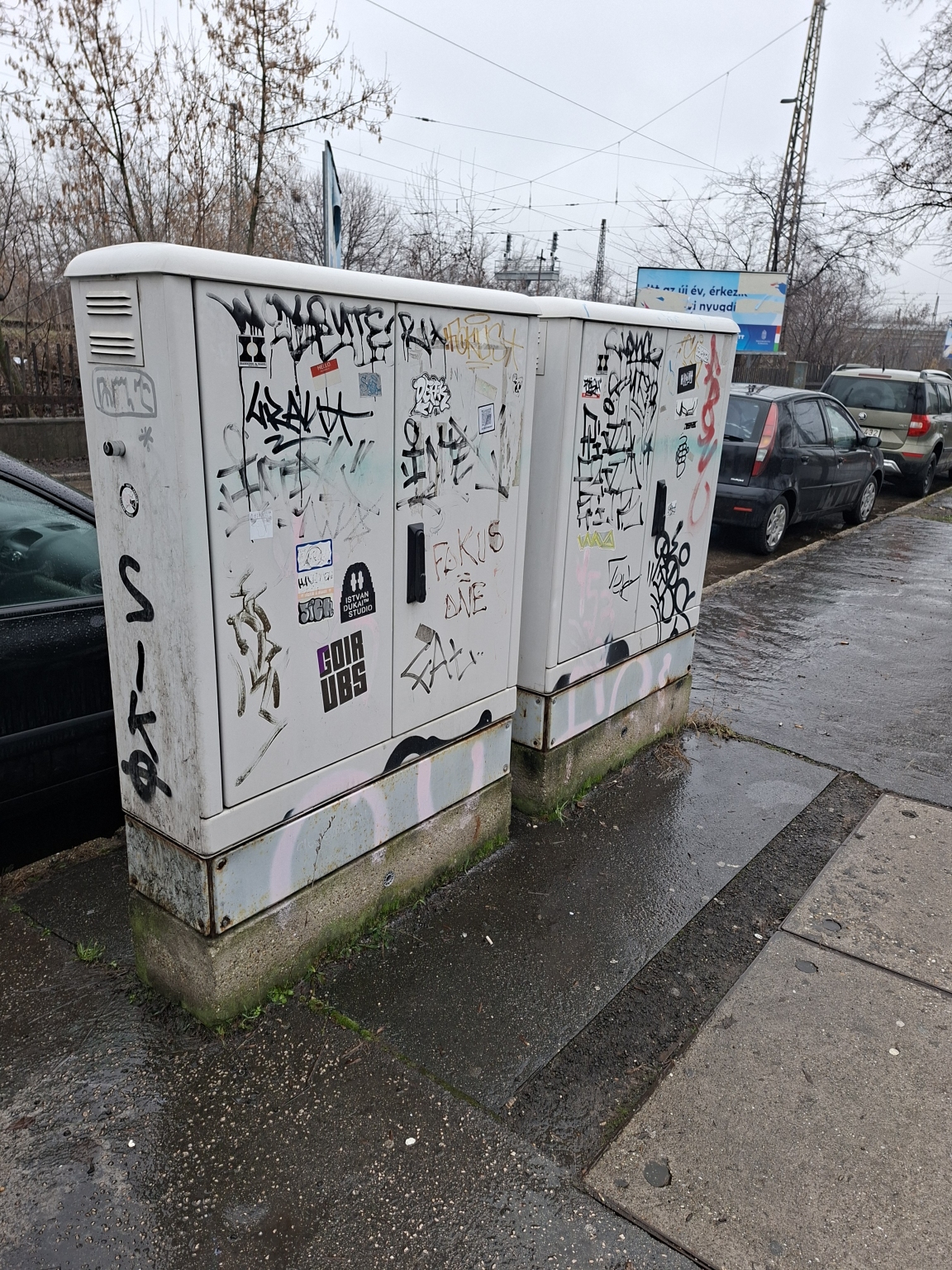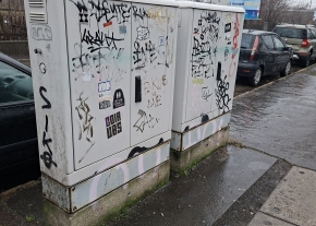 Zuglóban a Mexikói úti villamosvégállomás közelében graffitisek a képen làtható közműszekrények.