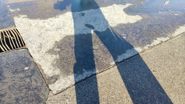 Csúszós aknafedél a forgalmas járdán