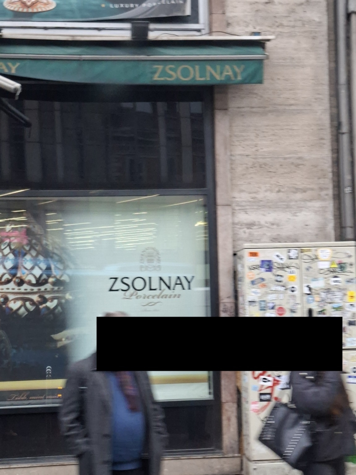 Az Astoriánál a buszmegàlló mellett graffitis egy közműszekrény.