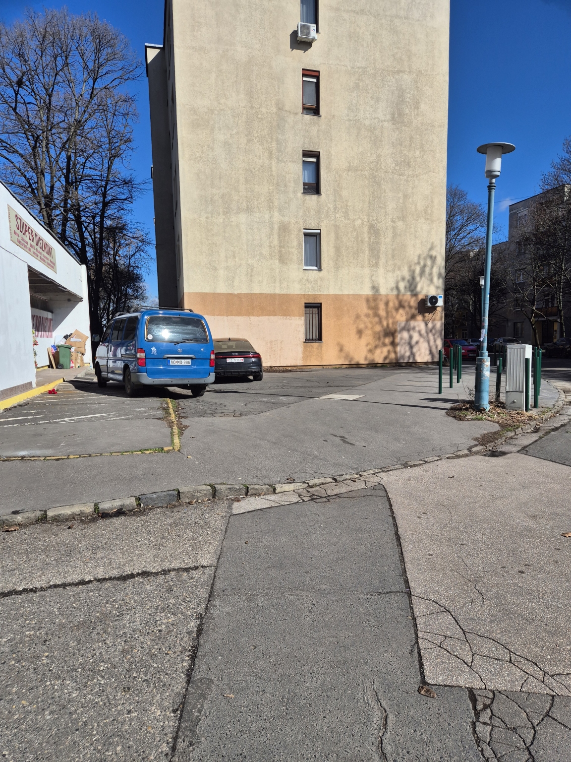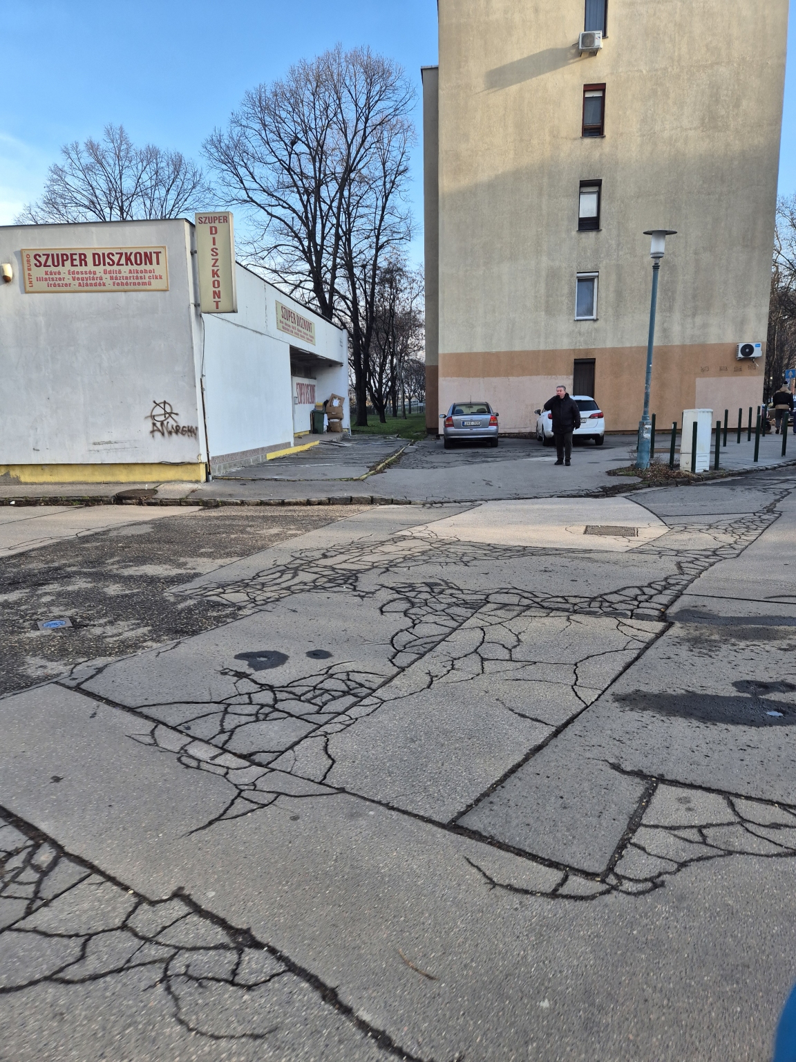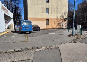 Továbbra is várjuk a járda védelmét valahogyan. Virágkaspókkal pl.