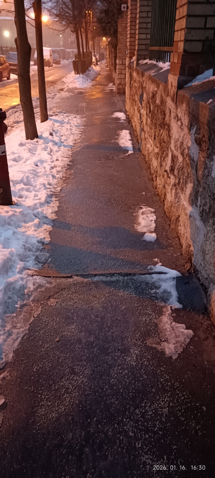 Kérem küszöböljék ki a hibát, kb 10cm magasan kiáll az aszfalt a járdából, erősen botlásveszélyes.