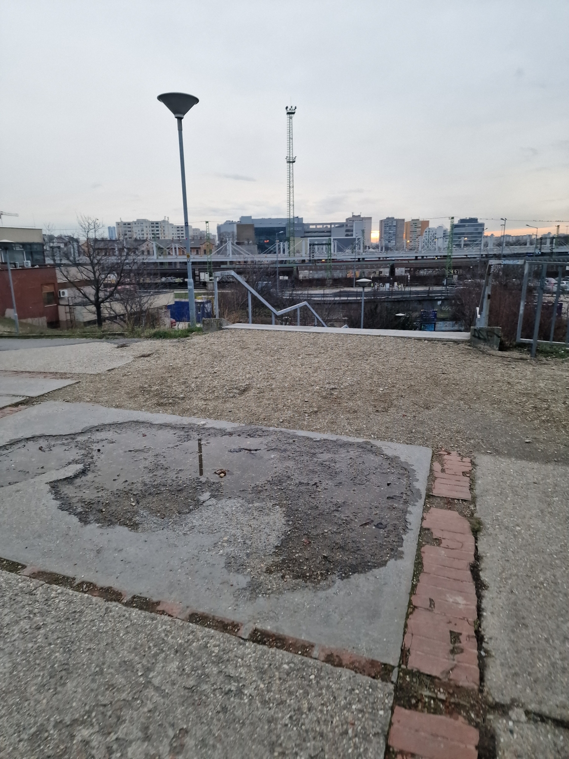 Kelenföld régi gyalogos aluljáró őrmezei kijáratánál lévő lépcső tetején kérem a járda felújítását, mert ez a murvás, kavicsos, sóderes beton megadta magát, amikor megfagy a víz, akkor pedig csúszós.
