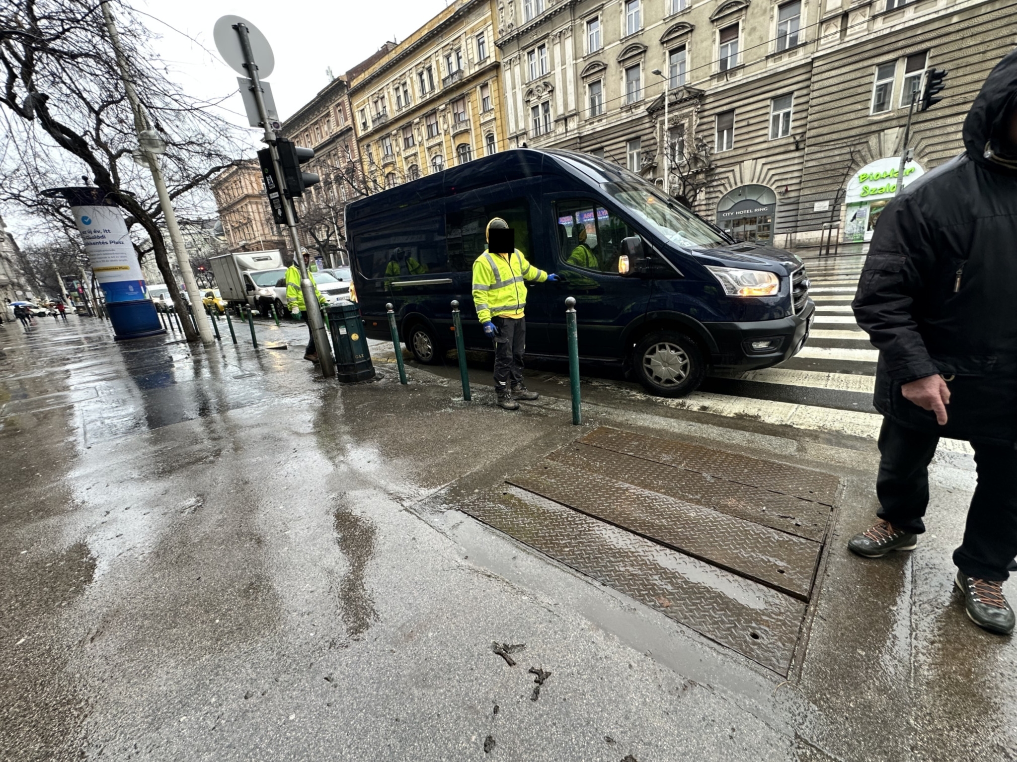 Szent István krt. 21. előtt a körút Nagy Ignác u. sarkán javítási munkálatokat végeztek. Nagy kalapácsütésekre lettem figyelmes. A munka végeztével nem tudták rendesen visszatenni a csatornafedőt, ami így kifejezetten veszélyes. A zebrán történő átkeléskor el lehet benne esni, pont a körút, az úttest szélére.