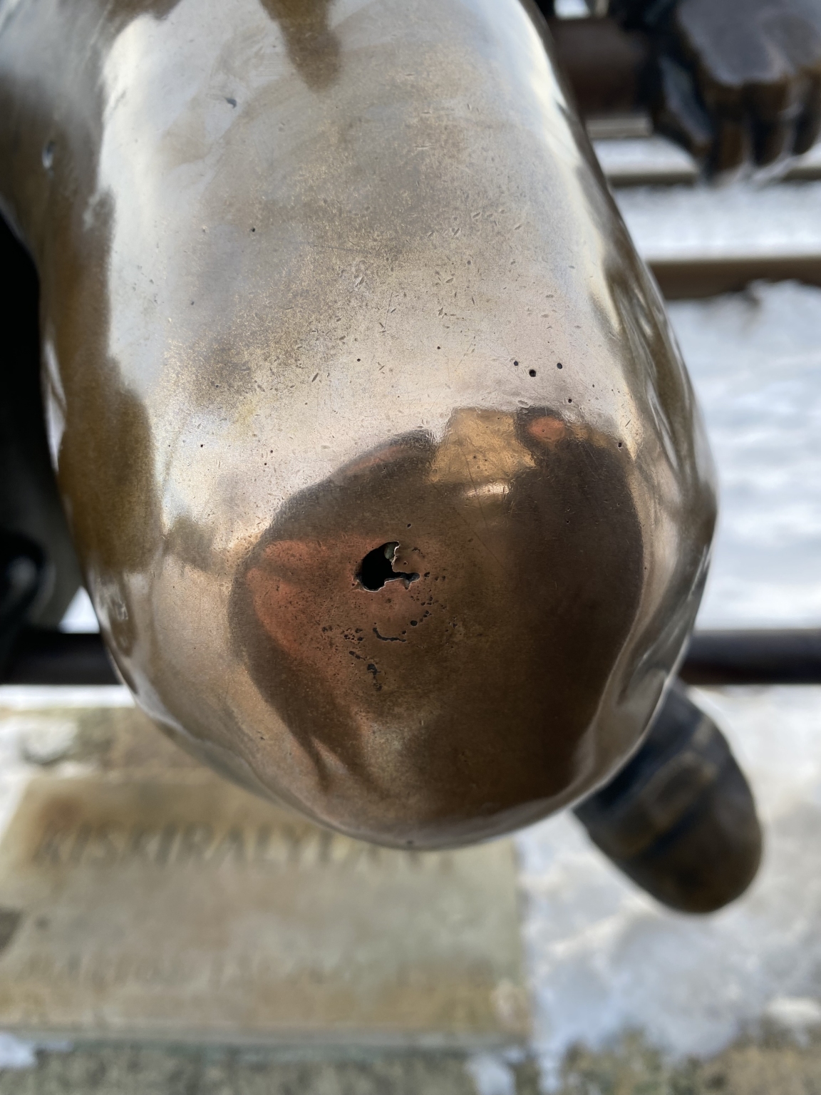 Babona a turistáknál, hogy meg kell simogatni a térdét. Nem tudom ez a hülyeség honnan jött, de az elmúlt évtizedben vált népszerűvé. Ennek eredménye képen már látszik foltozás a bronz műremeken, ami most megint kilyukadt...!